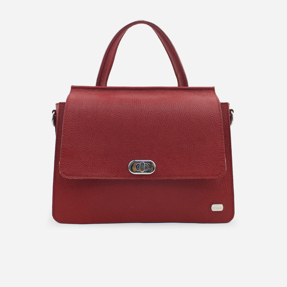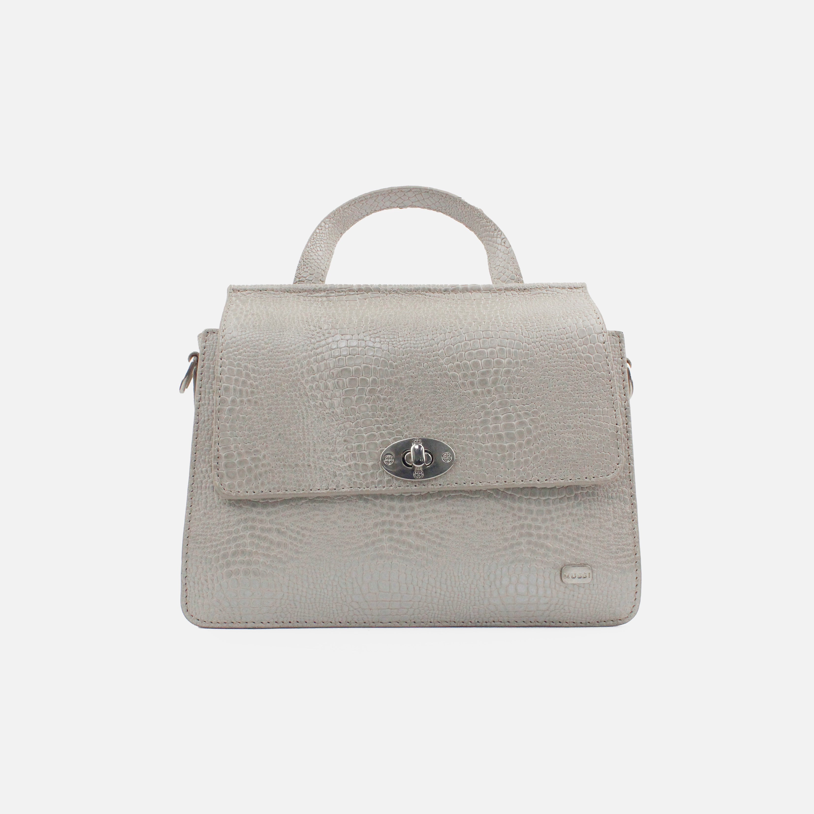 Bolso manos libres de material en cuero con dimensiones de ancho 23 cm por alto 16 cm, altura de asas 55 cm y forro interno de material textil. Ideal para combinar con tonos metálicos y prendas de noche, este bolso se convierte en el complemento ideal para destacar en cualquier evento festivo.