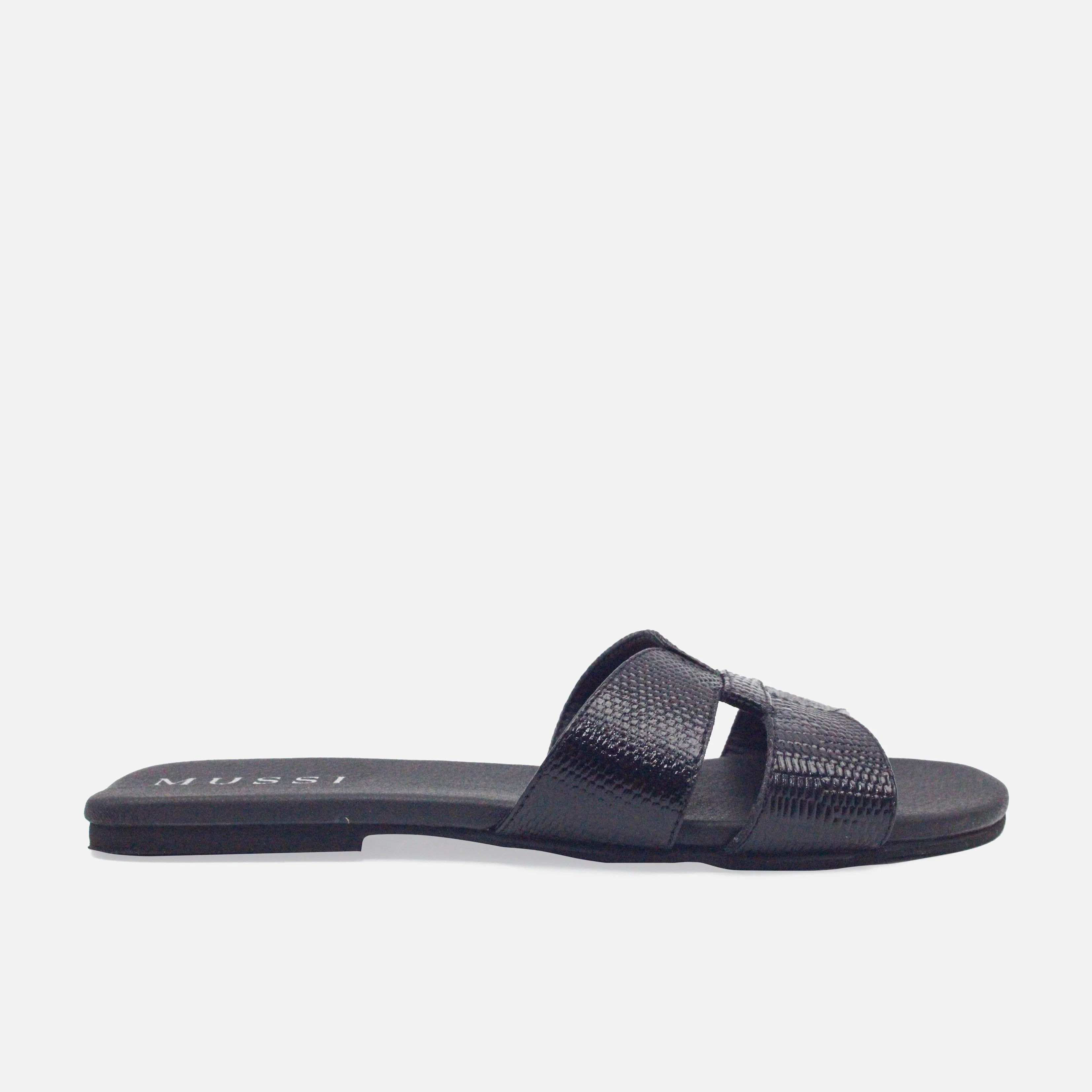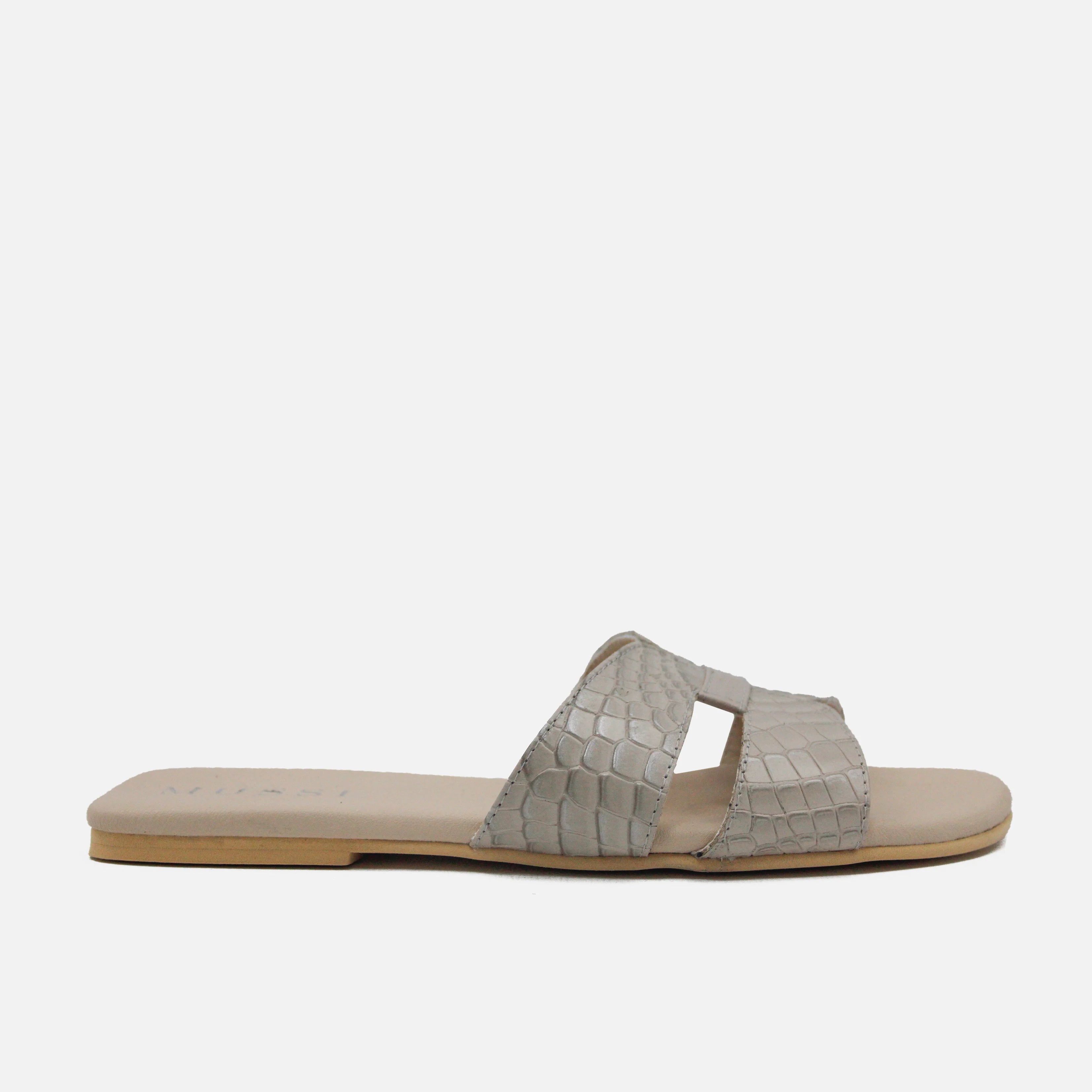 Sandalia plana con capellada en cuero, con suela en sintético de 1 cm de altura y forro interno en sintético. Es un básico infaltable en el armario que puedes usar en todas las temporadas, especialmente con atuendos casuales