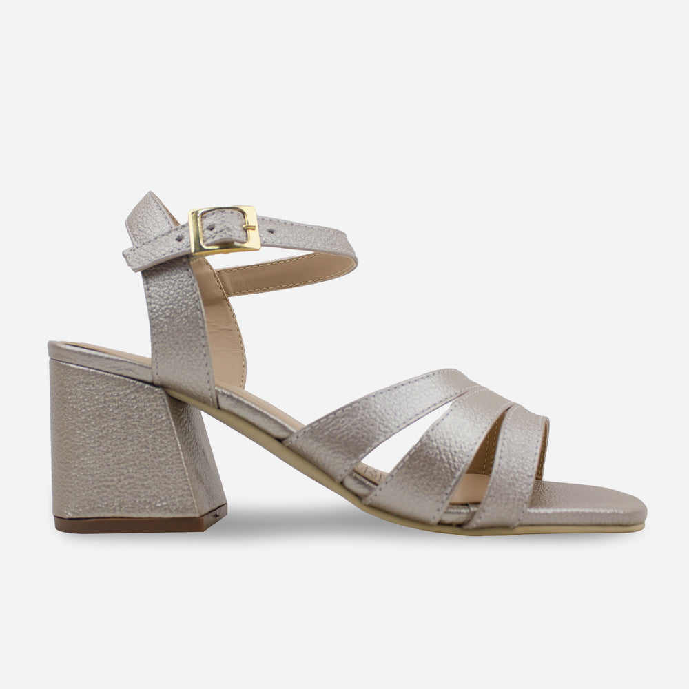 Sandalia tacon violeta de cuero para mujer - Champaña