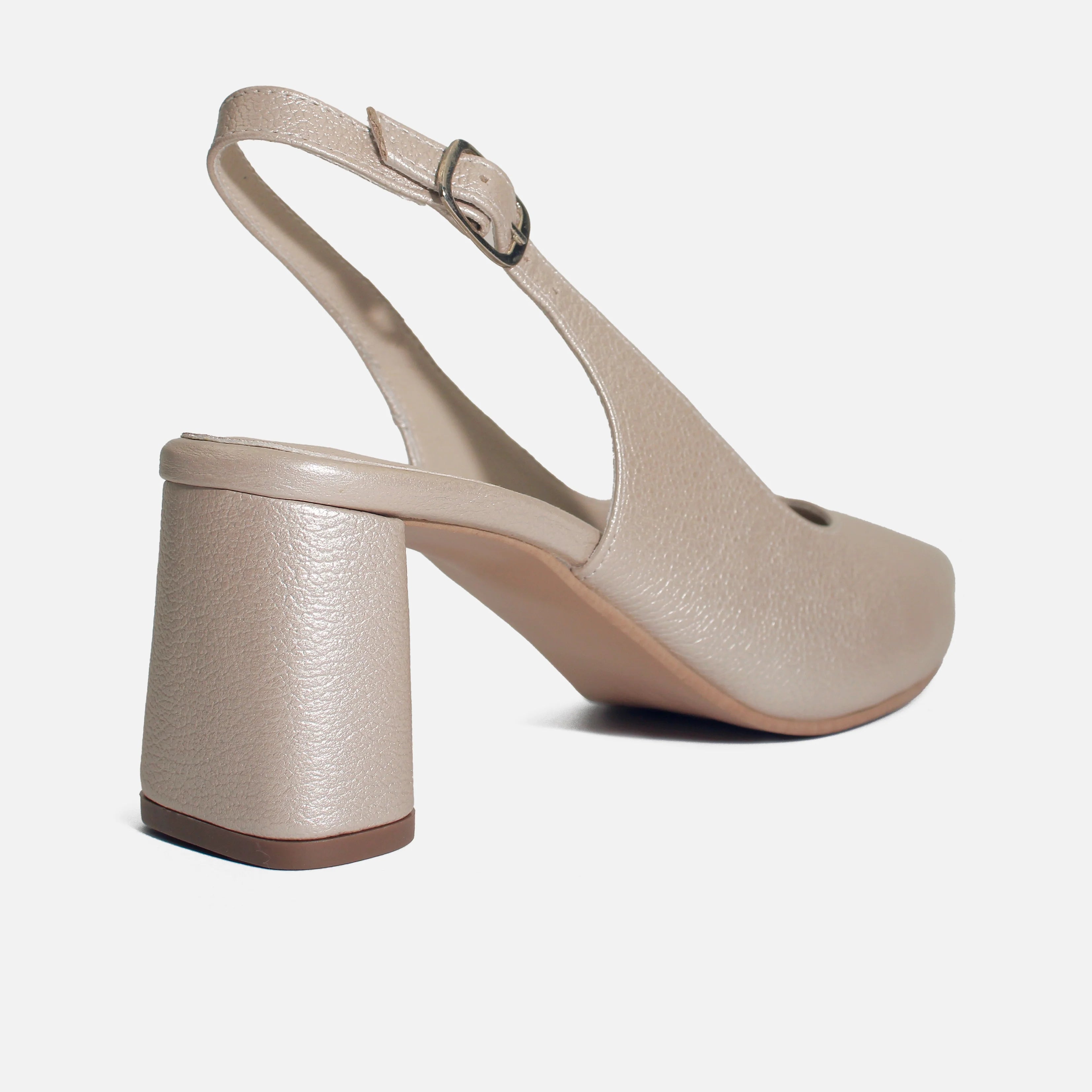 Tacones con capellada en cuero, con suela en sintético de 7 cm de altura y forro interno en sintético. Sofisticación en cada paso. Esta zapatilla destalonada (slingback) es la definición de feminidad moderna. Con un diseño que estiliza la figura, es el calzado ideal para eventos formales o para elevar un outfit de jeans y blazer.