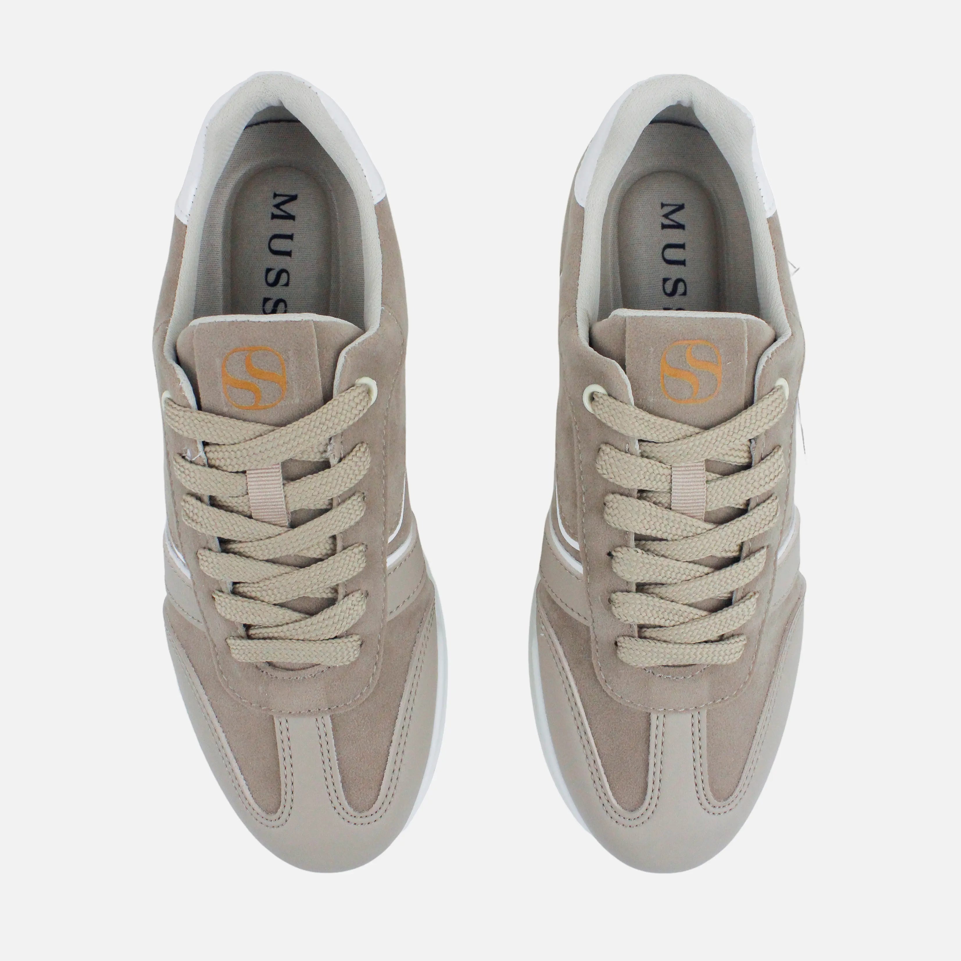 Tenis con capellada en sintético, con suela en sintético de 3 cm de altura y forro interno en textil. Tenis urbano en color azul marino con contraste de suela beige que le da un aire moderno y versátil. Su diseño combina textura lisa y detalles en acabado brillante que aportan estilo sin perder la comodidad. Perfectos para uso diario, desde un look casual con jeans hasta un outfit relajado de fin de semana.