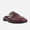 Zueco plano con capellada en cuero, con suela en sintético de 2 cm de altura y forro interno en textil. Su diseño tipo mocasín con detalle decorativo en el empeine y acabado texturizado lo convierten en una pieza elegante y versátil. Ideal para looks casuales o de oficina, su estructura abierta en el talón permite calzarlo fácilmente y mantener el confort durante todo el día.