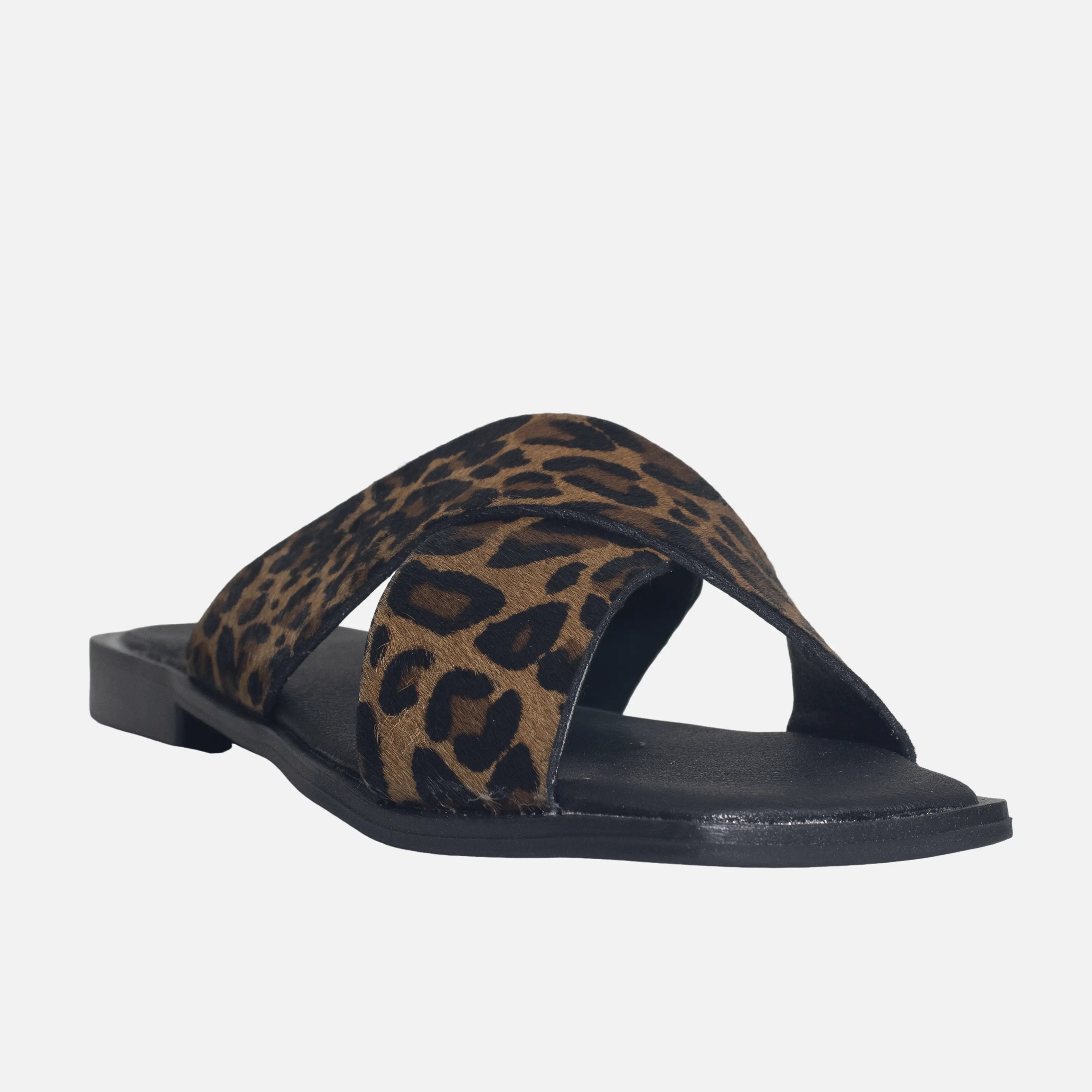 Sandalia plana con capellada en cuero, con suela en sintético de 2 cm de altura y forro interno en sintético. Sofisticada y versátil, ideal para looks casuales con un toque chic. Su diseño liviano y estilizado ofrece comodidad en cada paso, perfecta para acompañar vestidos fluidos o jeans. Un básico moderno que combina elegancia y frescura en los días cálidos.
