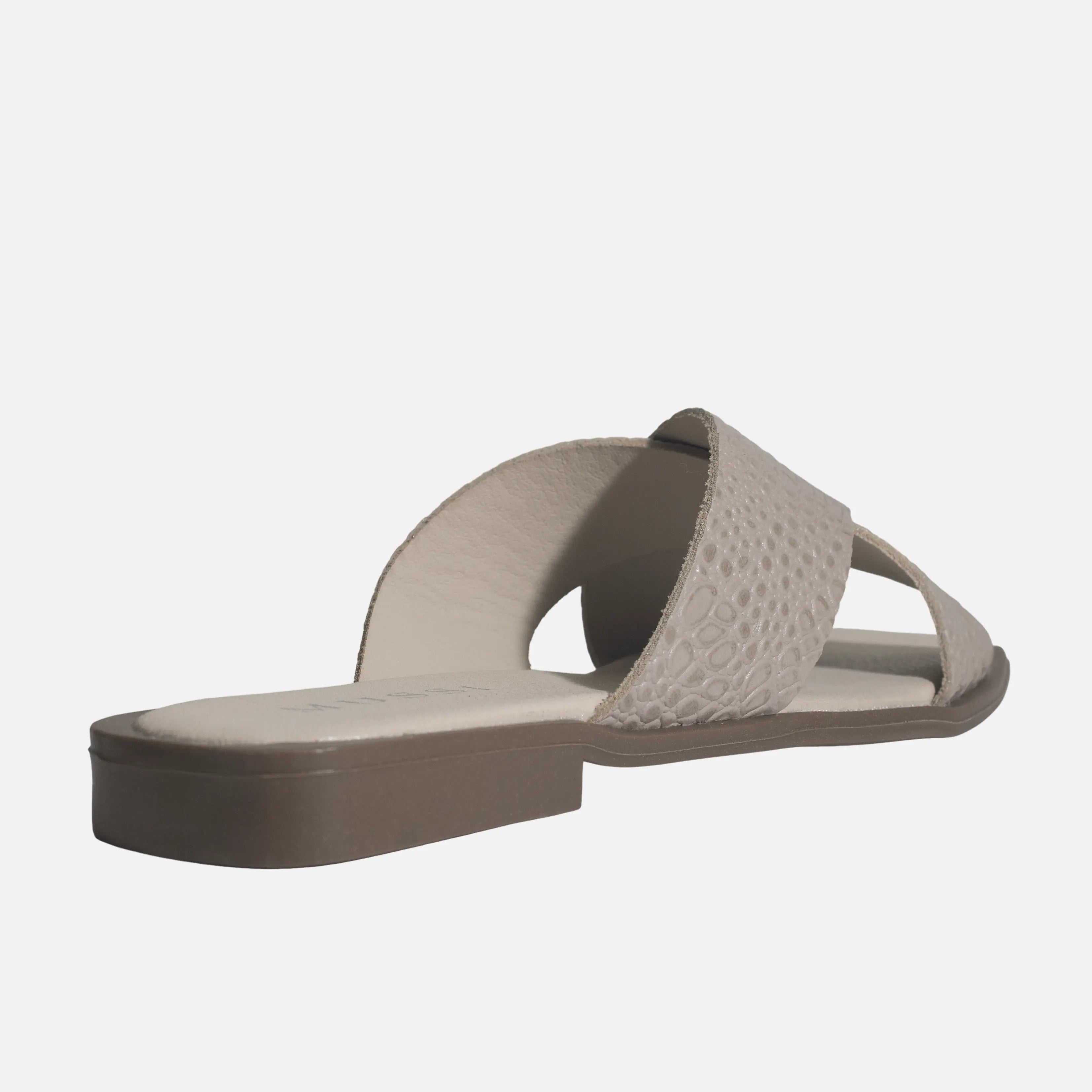 Sandalia plana nyra de cuero para mujer - Taupe