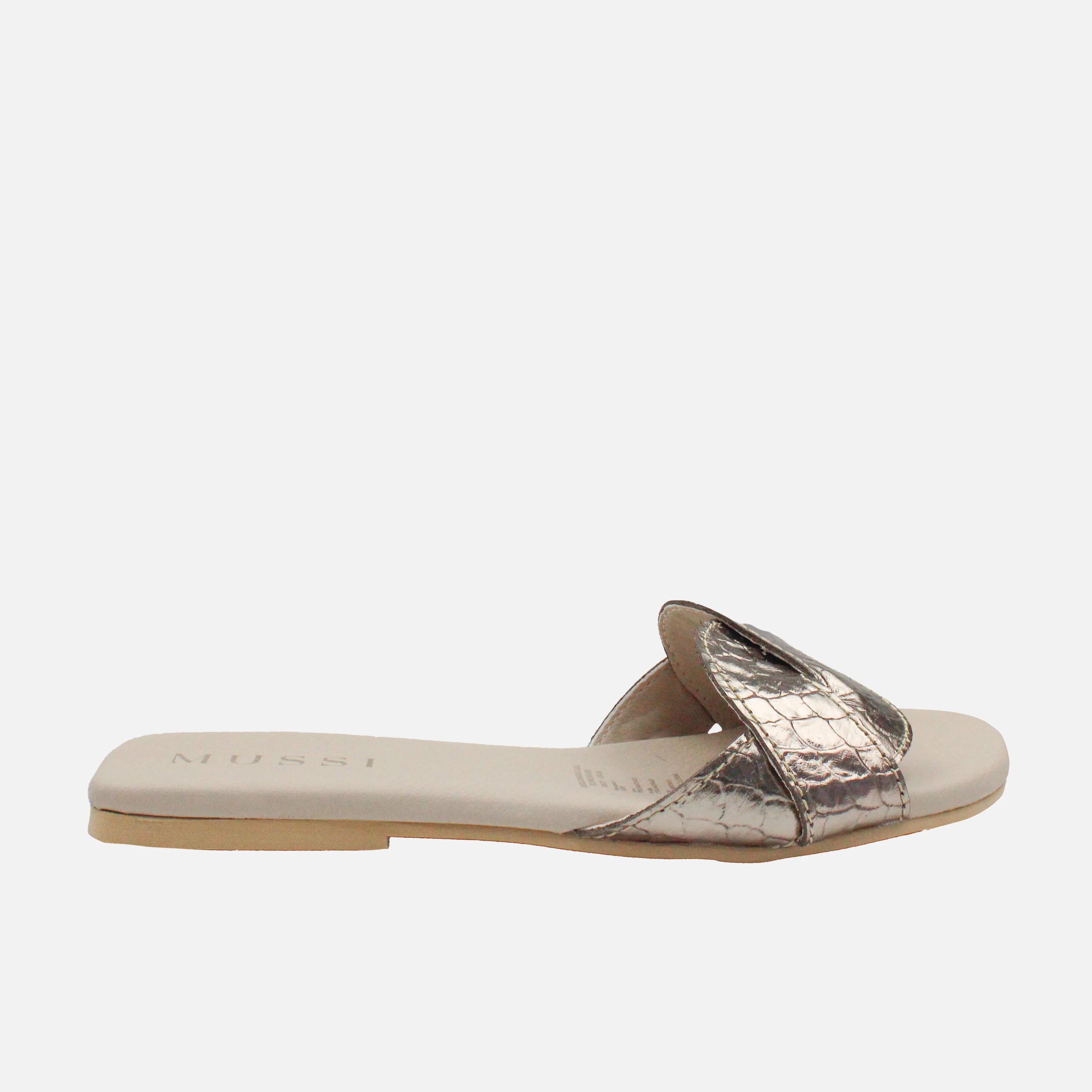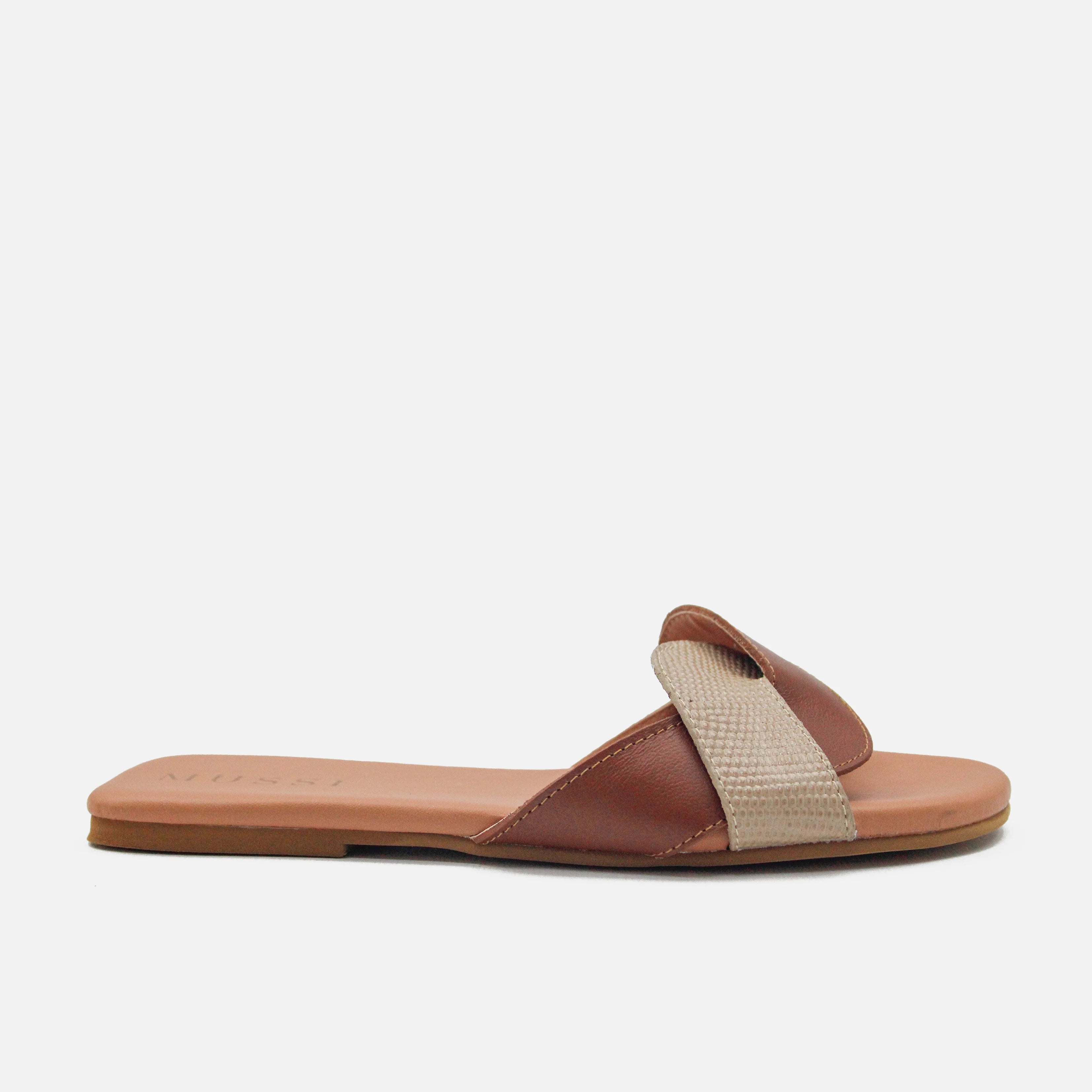 Sandalia plana con capellada en cuero, con suela en sintético de 1 cm de altura y forro interno en sintético. Nuestra sandalia plana es una opción perfecta para elevar tus outfits y estar lista para los eventos del día. La calidad, creatividad y estilo se entrelazan en cada detalle de estas sandalias.