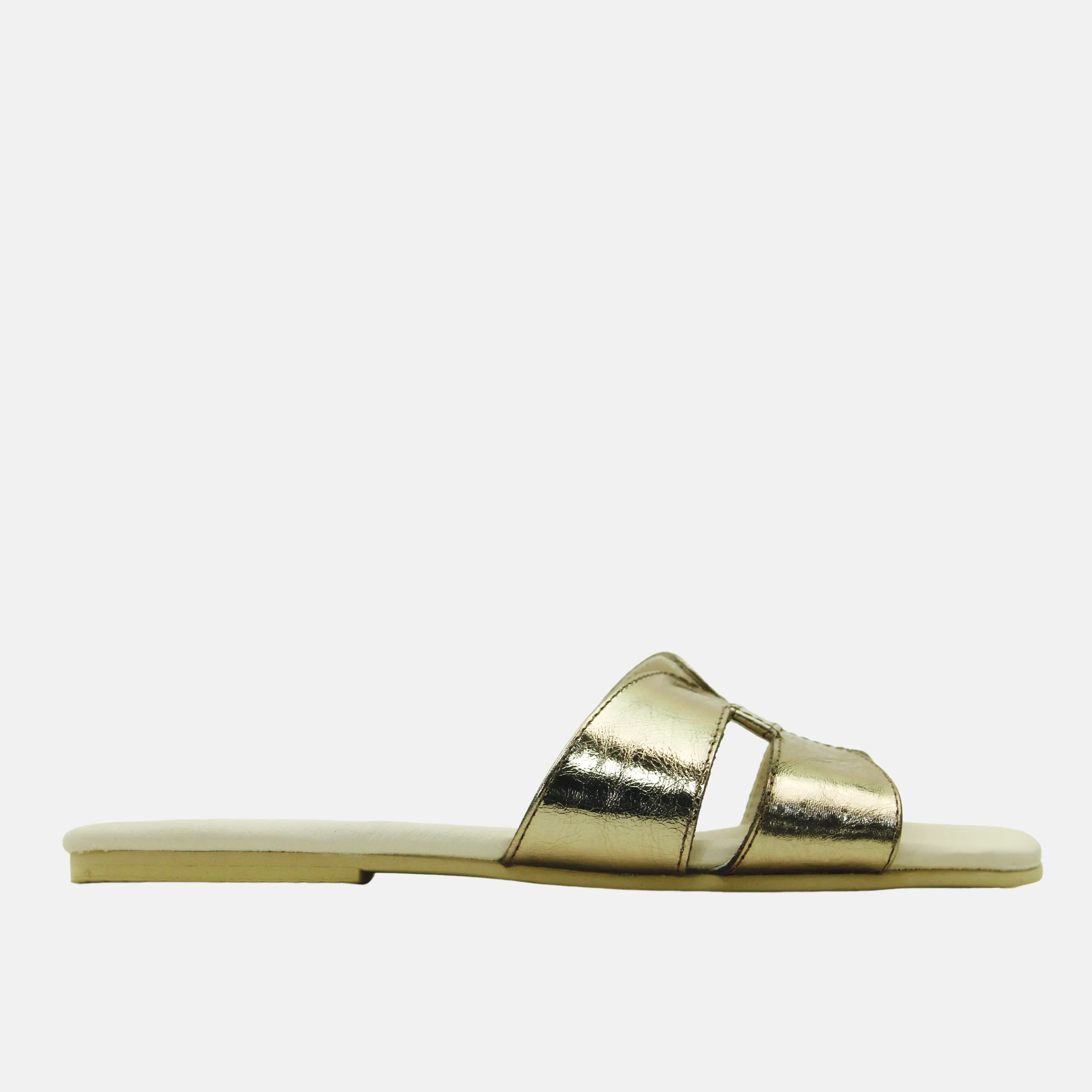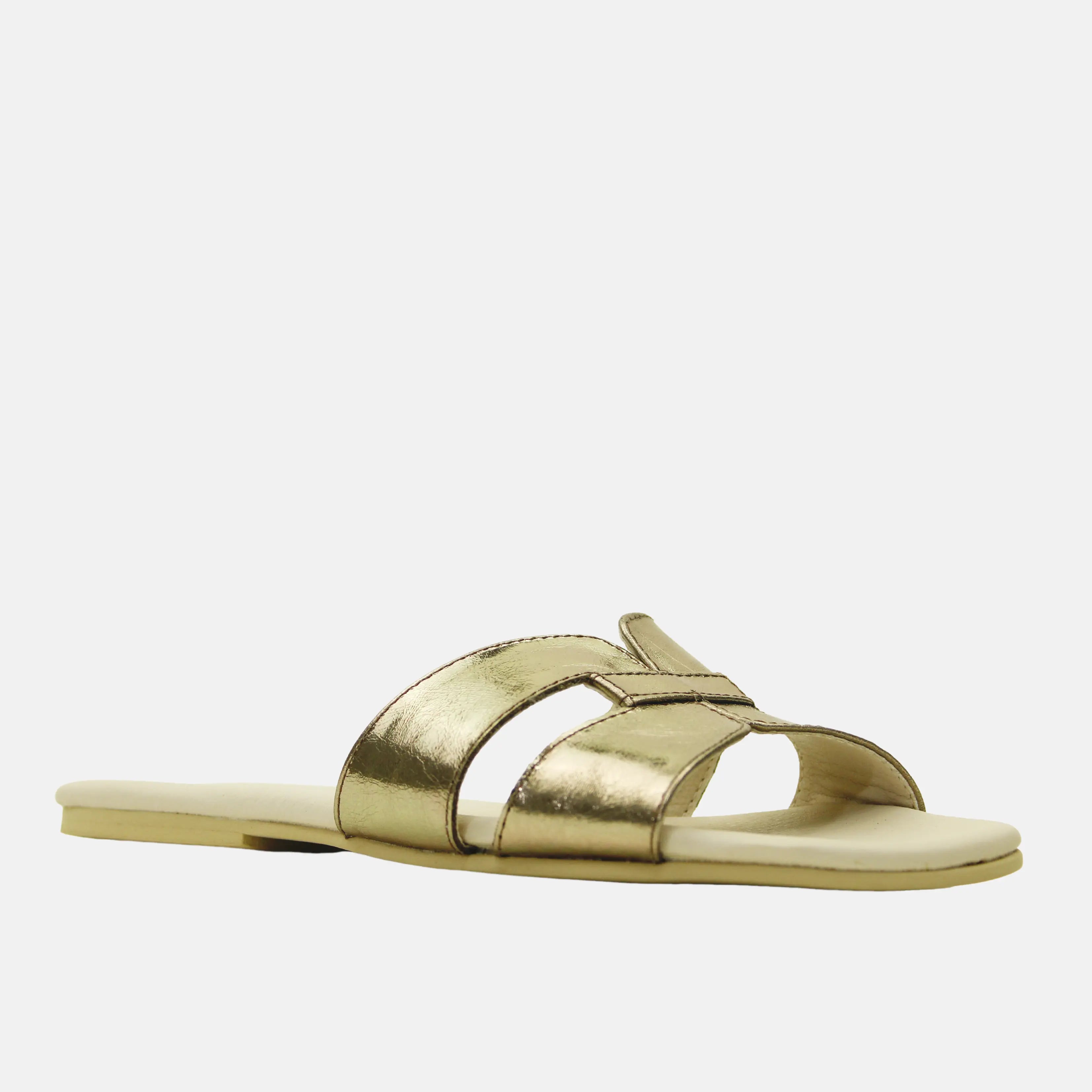 Sandalia plana con capellada en cuero, con suela en sintético de 1 cm de altura y forro interno en sintético. Es un básico infaltable en el armario que puedes usar en todas las temporadas, especialmente con atuendos casuales