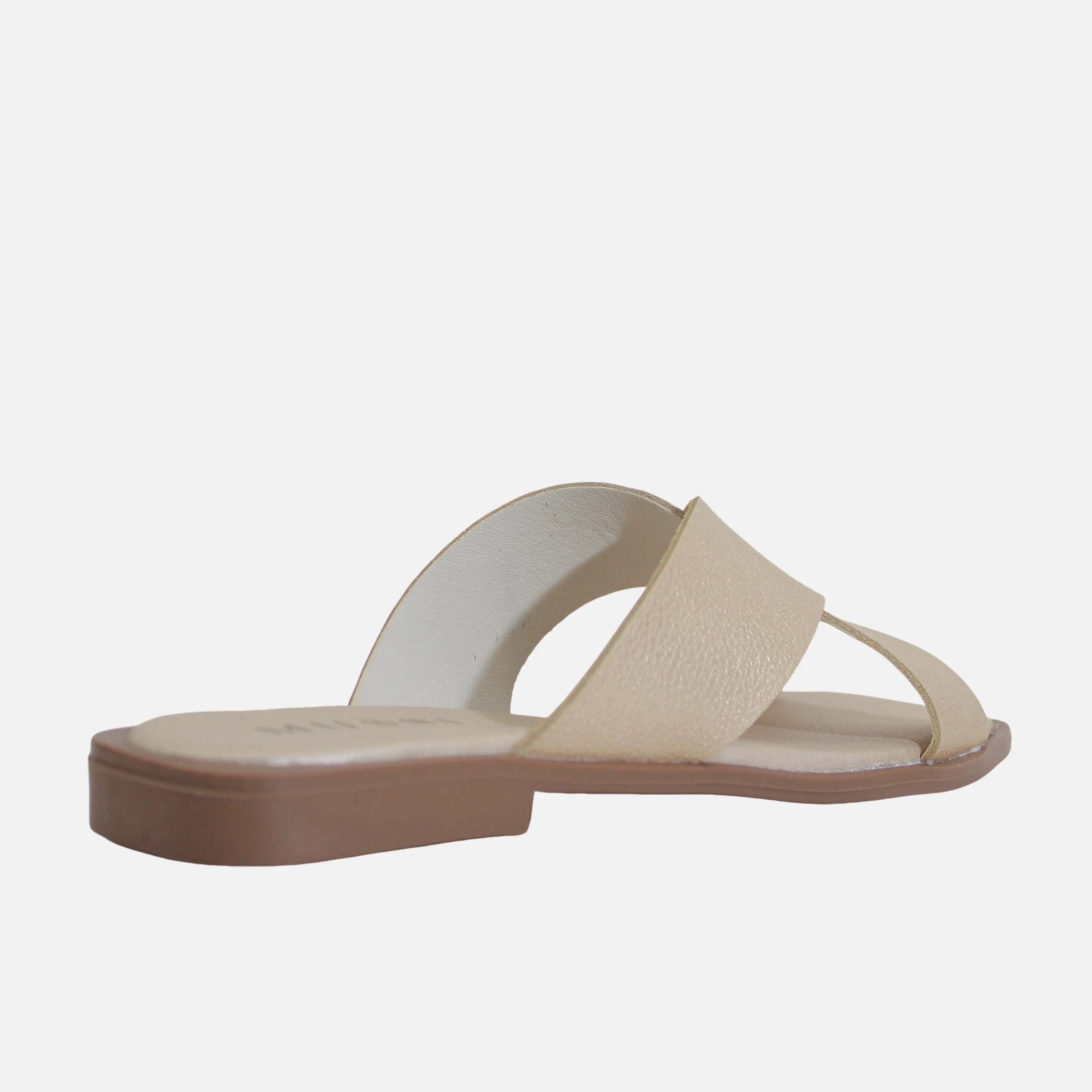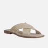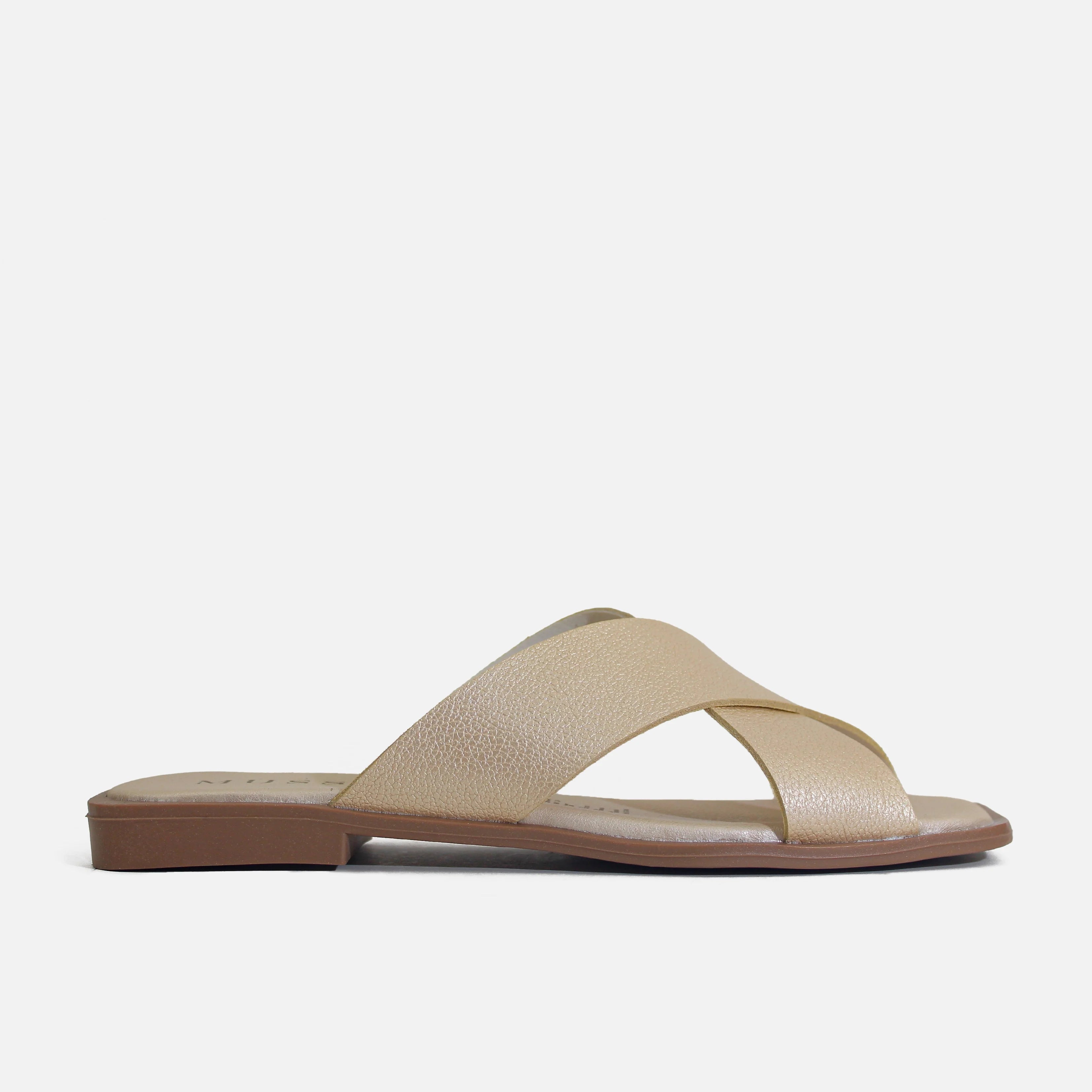 Sandalia plana con capellada en cuero, con suela en sintético de 2 cm de altura y forro interno en sintético. Sofisticada y versátil, ideal para looks casuales con un toque chic. Su diseño liviano y estilizado ofrece comodidad en cada paso, perfecta para acompañar vestidos fluidos o jeans. Un básico moderno que combina elegancia y frescura en los días cálidos.