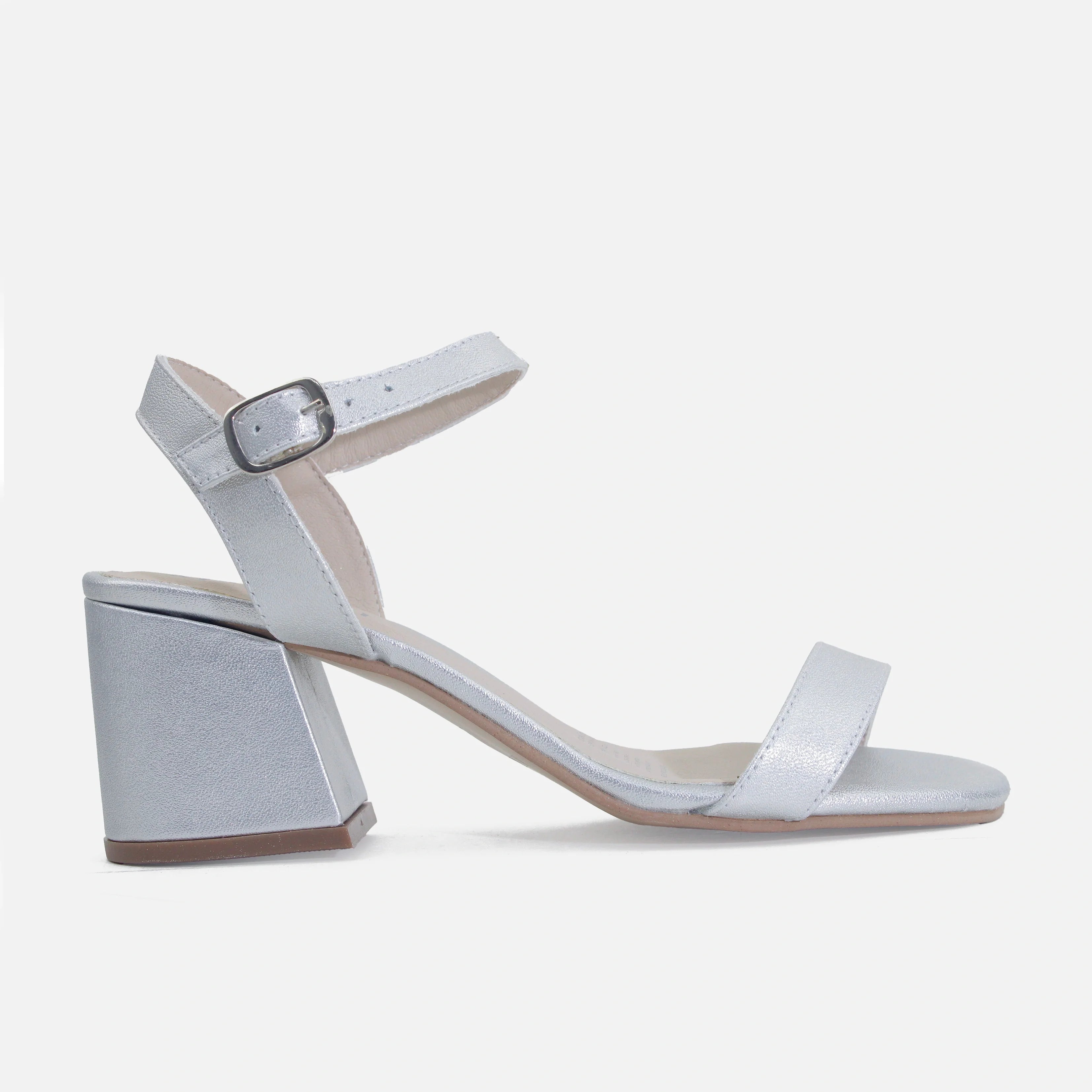Sandalia tacon itaya de cuero para mujer - Plateado