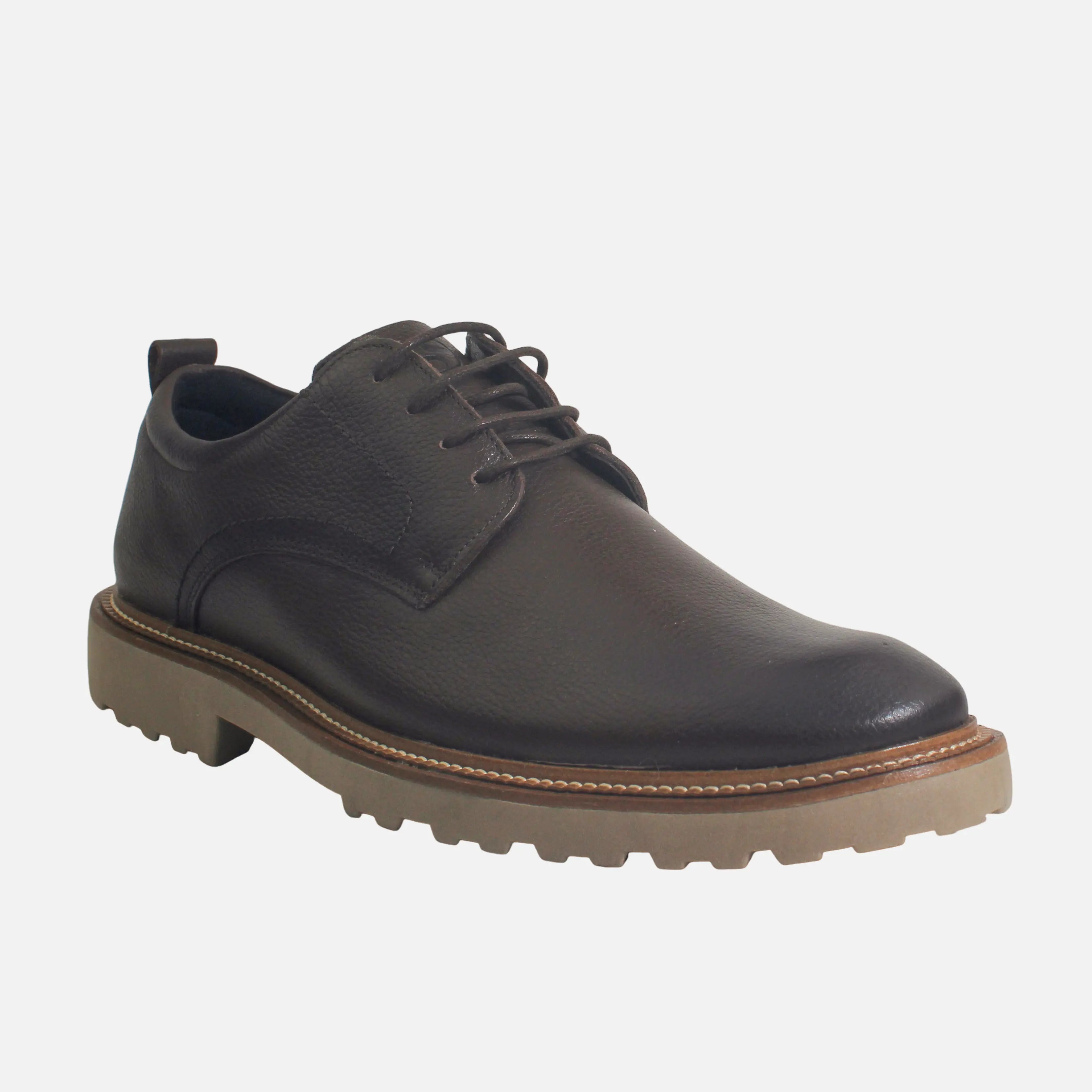 Tenis con capellada en cuero, con suela en sintético de 4 cm de altura y forro interno en textil. Un zapato clásico con un toque moderno. Los derby para hombre son ideales para looks formales, de oficina o eventos especiales.