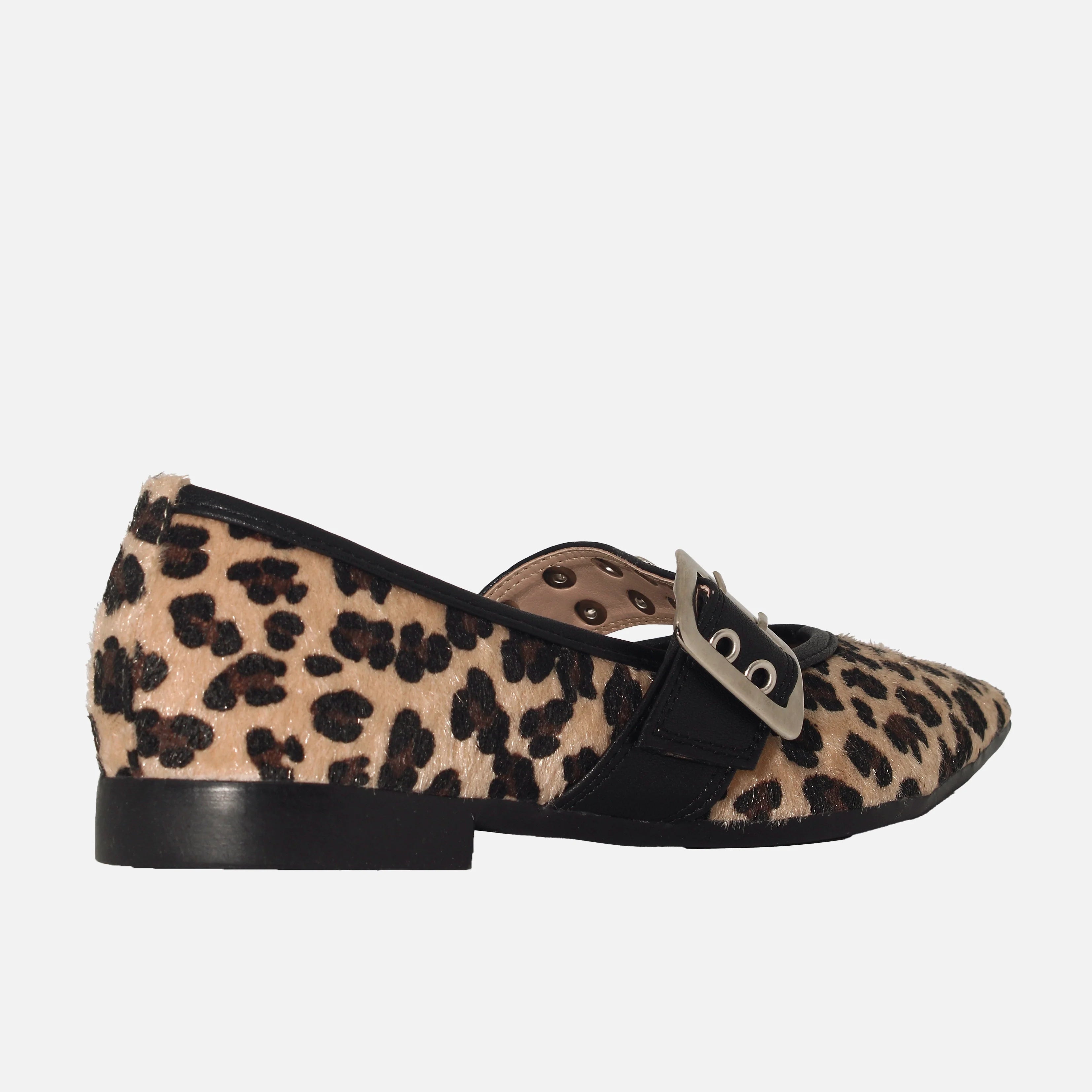 Baleta plana con capellada en textil, con suela en sintético de 2 cm de altura y forro interno en sintético. Baleta plana para mujer con un diseño moderno y sofisticado que eleva cualquier look diario. Su estampado tipo animal print aporta un toque trendy, mientras la hebilla frontal suma carácter y estilo. Perfecta para jornadas largas gracias a su silueta cómoda y versátil, ideal para combinar con jeans, vestidos o pantalones sastre. Un básico con personalidad para el día a día.