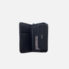 Billetera de material en cuero con dimensiones de ancho 15 cm por alto 10 cm y forro interno de material textil. La billetera tiene capacidad para dinero, documentos y tarjetas fácilmente y tiene un formato compacto, perfecto para el uso diario
