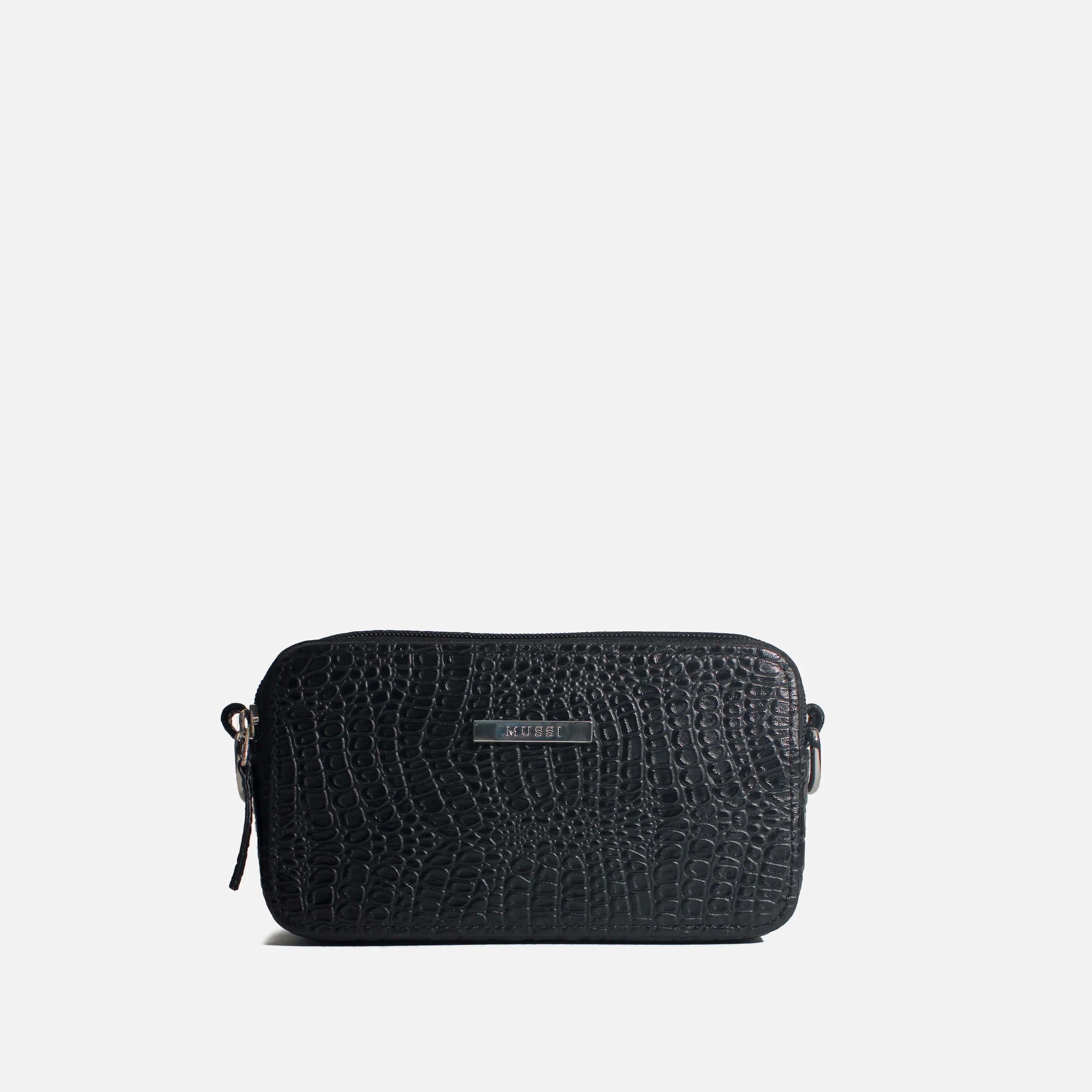 Bolso manos libres de material en cuero con dimensiones de ancho 19 cm por alto 11 cm, altura de asas 64 cm y forro interno de material textil. Ideal para el uso diario, este bolso se adapta tanto a looks casuales como formales, convirtiéndose en el complemento perfecto para cualquier atuendo.