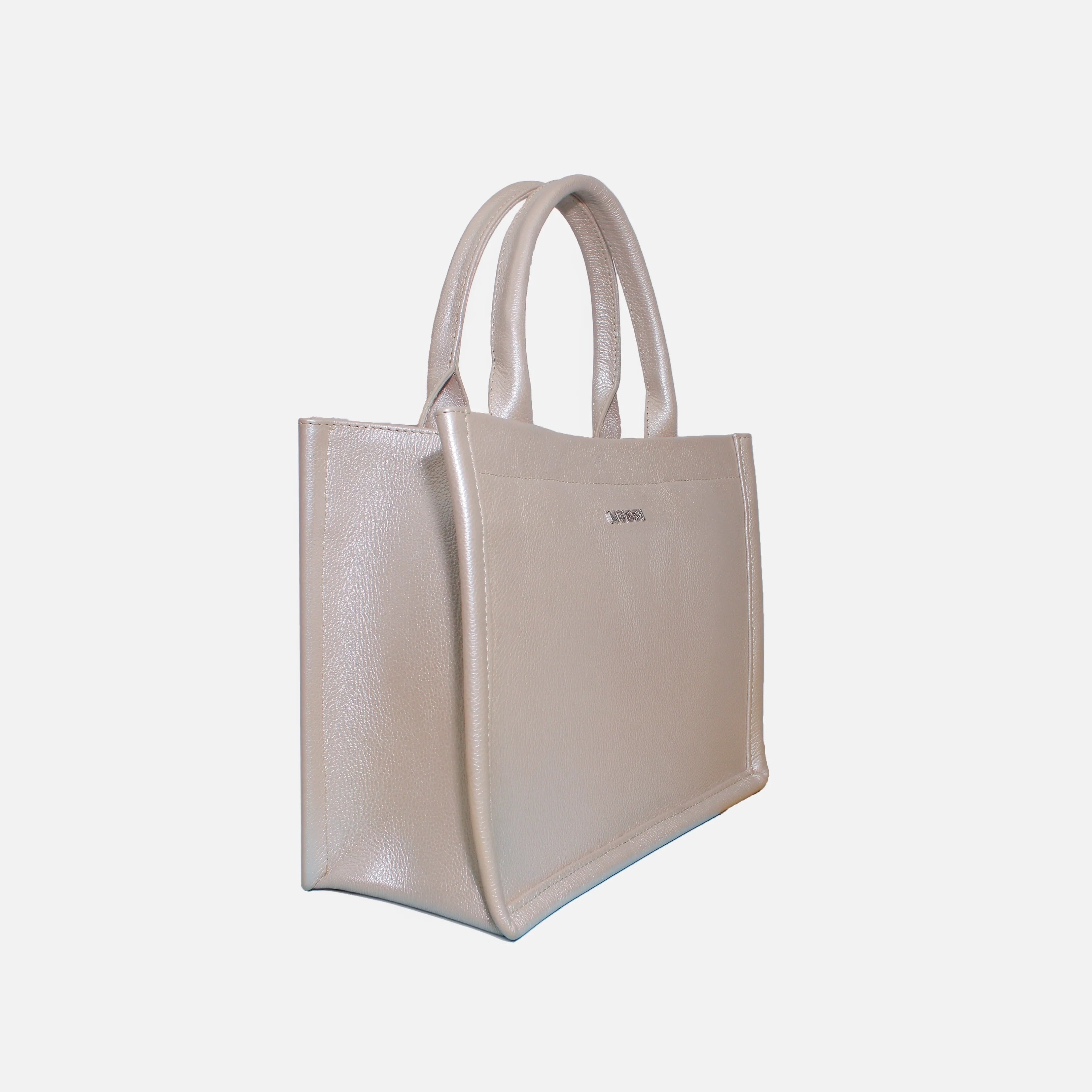Cartera de material en cuero con dimensiones de ancho 29 cm por alto 21 cm, altura de asas 13 cm y forro interno de material textil. Su silueta rígida y asas cortas aportan un aire sofisticado, ideal para elevar tus outfits de oficina o salidas casuales. Espaciosa, moderna y con acabados impecables, esta cartera se convierte en la aliada perfecta para acompañarte con estilo todos los días.