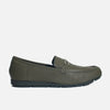 Mocasin plano gema de cuero para mujer - Verde