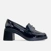 Mocasin tacon con capellada en sintético, con suela en textil de Sintético cm de altura y forro interno en sintético. Mocasín en material sintético con acabado tipo charol que aporta un brillo elegante y moderno. Tacón cuadrado de 6 cm con plataforma de 1 cm que ofrece altura con total comodidad. Forro licrado y acolchado para un calce suave. Su diseño clásico con antifaz en el empeine lo convierte en un básico versátil para elevar cualquier look de oficina o de día.
