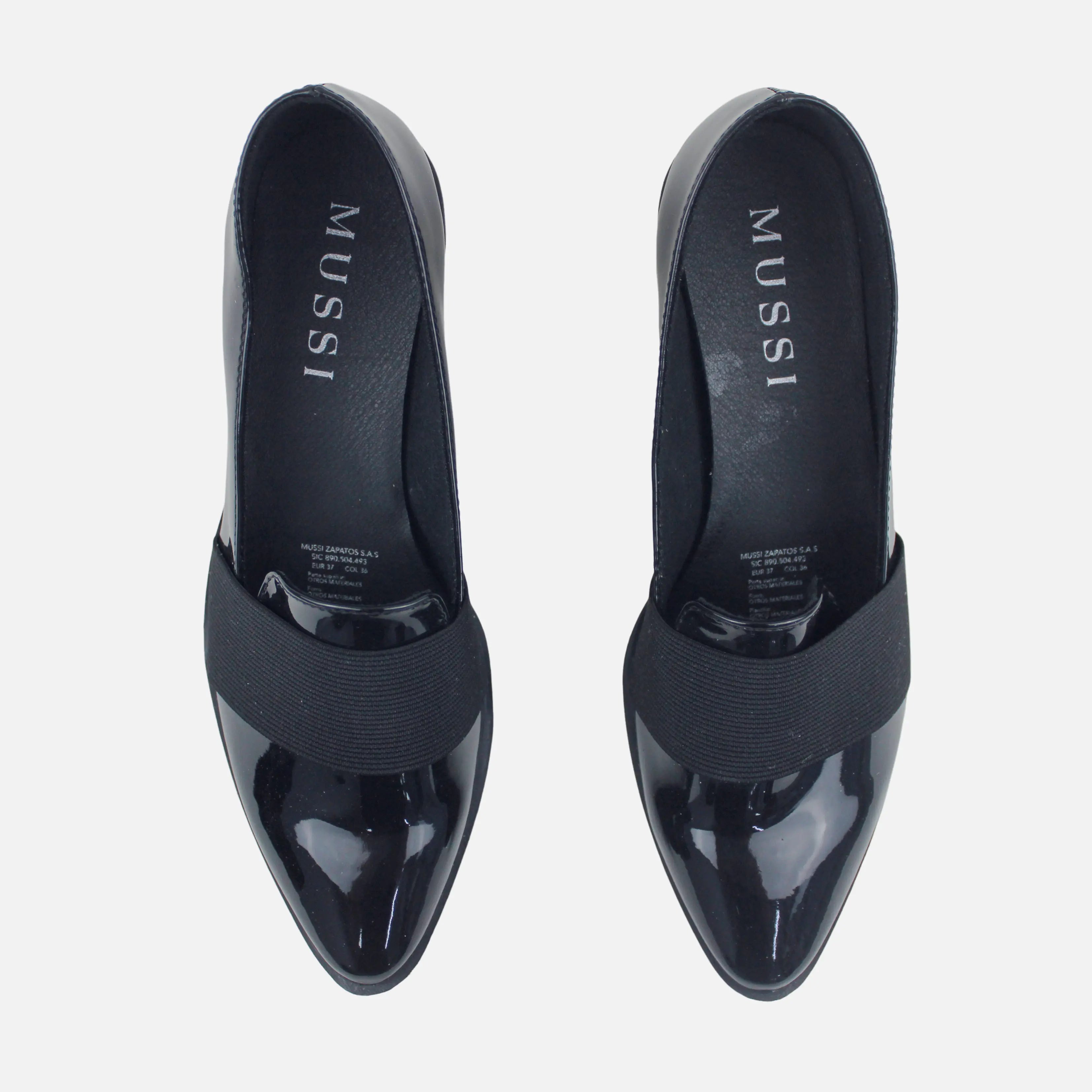 Mocasin tacon con capellada en sintético, con suela en sintético de 5 cm de altura y forro interno en sintético. Mocasín con acabado brillante y elástico ancho que realza el empeine, combinando comodidad y elegancia en un mismo diseño. Su tacón bajo aporta un toque sofisticado sin perder confort, ideal para acompañar looks de oficina o outfits casuales con jeans y blazer.