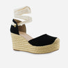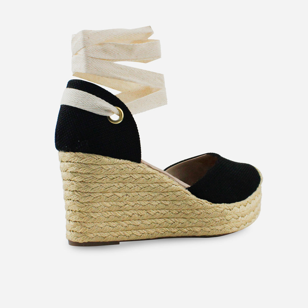 Sandalia espadrilla con capellada en textil, con suela en sintético de 8 cm de altura y forro interno en textl. Sandalias forradas en yute, aporta un estilo rústico y veraniego, proporcionando una excelente amortiguación y comodidad durante el uso prolongado Estos zapatos son una opción versátil y atractiva, ideales tanto para paseos como para eventos informales
