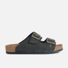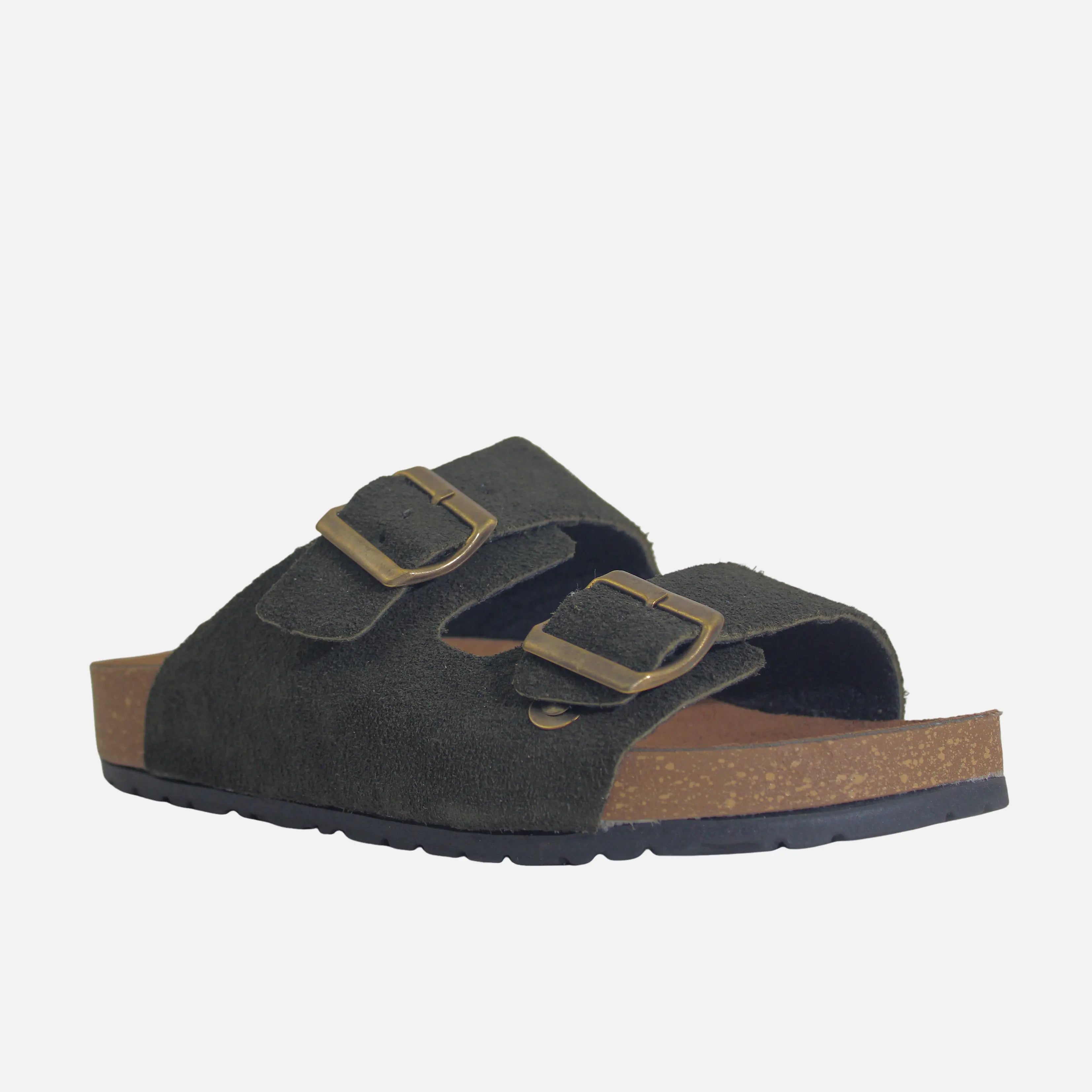 Sandalia plana con capellada en cuero, con suela en sintético de 3 cm de altura y forro interno en sintético. Sandalia masculina tipo bio en tono marrón, con doble correa y hebillas ajustables que brindan un ajuste seguro y práctico. Su suela ergonómica ofrece comodidad durante todo el día, ideal para caminar con frescura y estilo. Un diseño versátil que combina con bermudas, jeans o pantalones ligeros, perfecto para looks relajados y casuales.