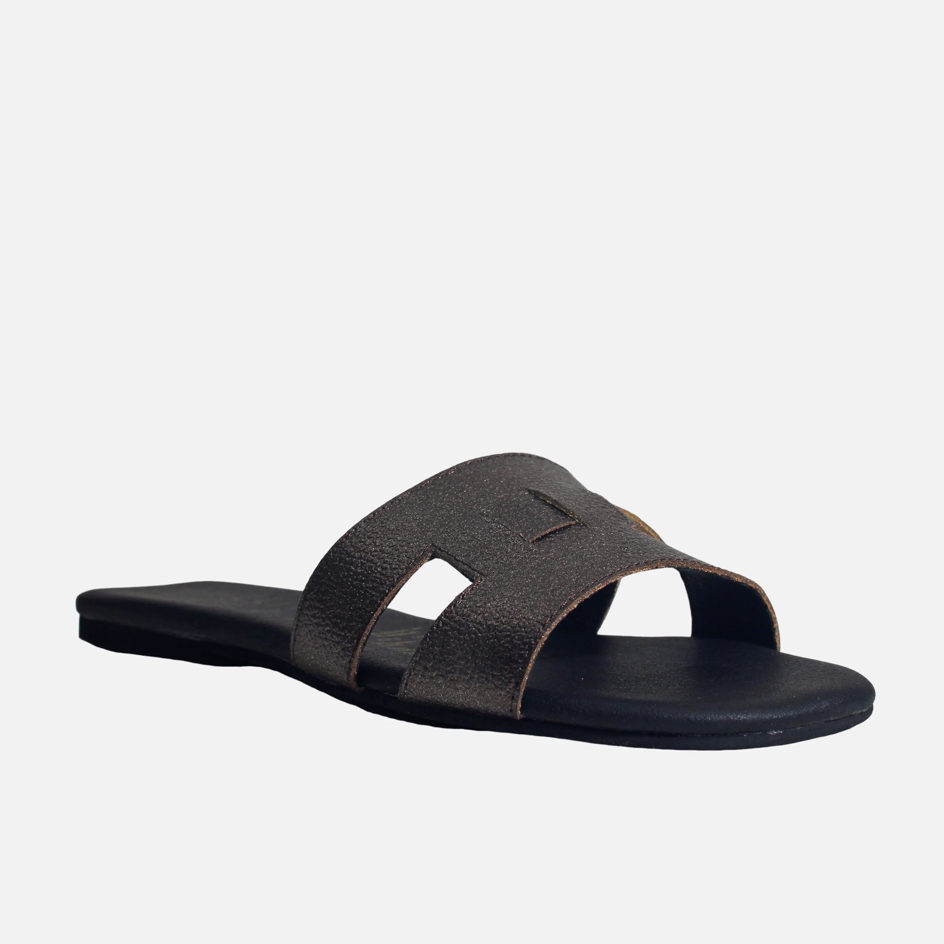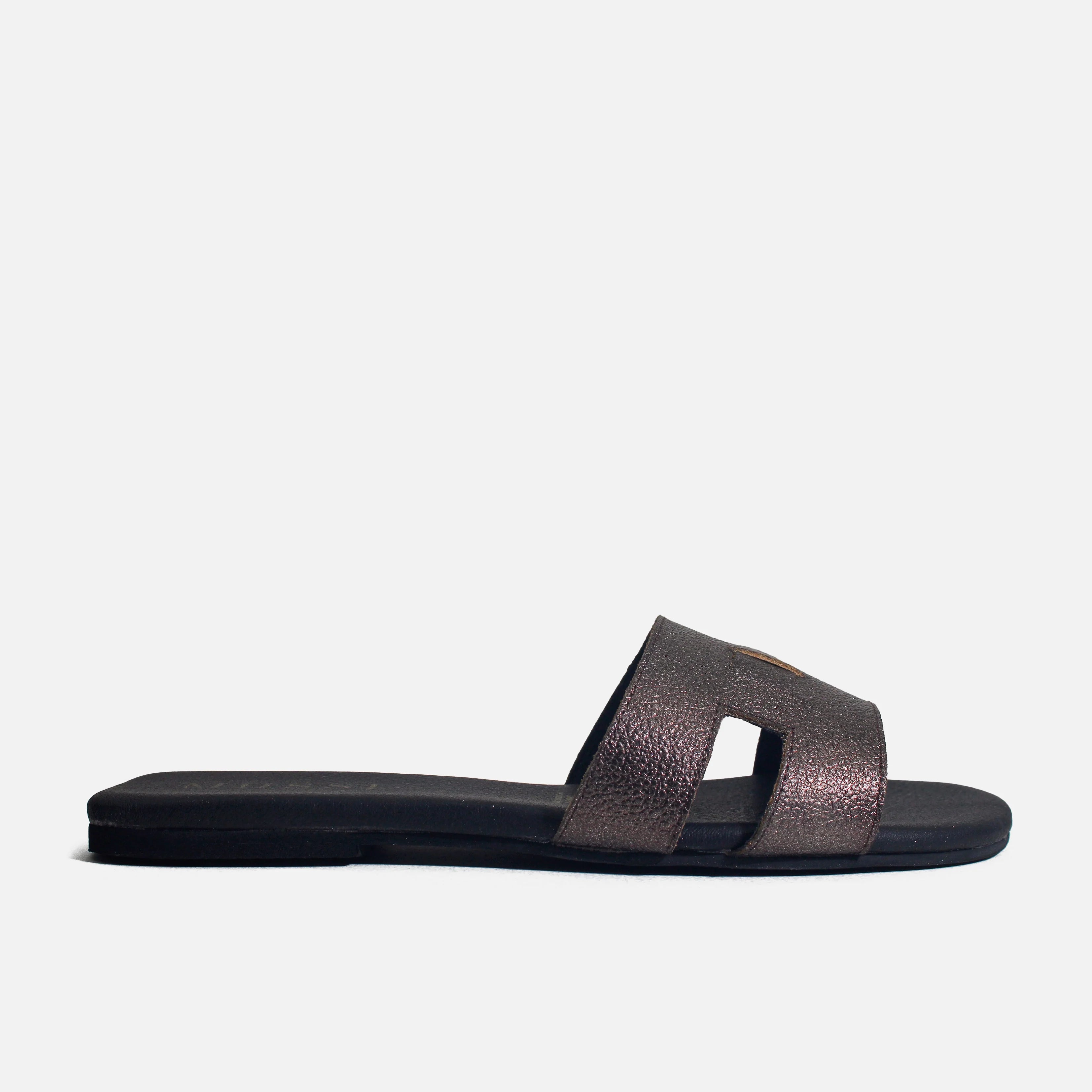 Sandalia plana con capellada en cuero, con suela en sintético de 1 cm de altura y forro interno en sintético. Sandalia plana fresca y práctica, perfecta para acompañarte en tus planes diarios.