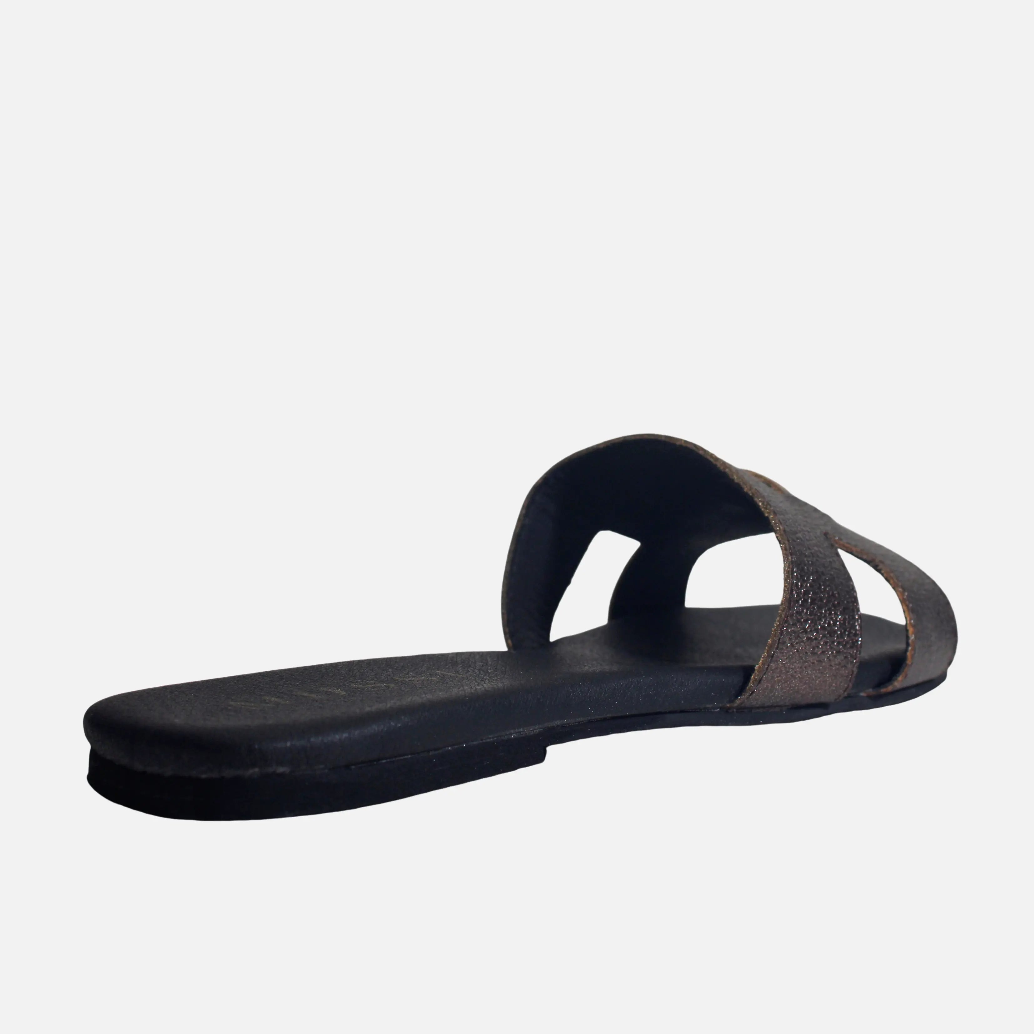 Sandalia plana bianca de cuero para mujer - Bronce