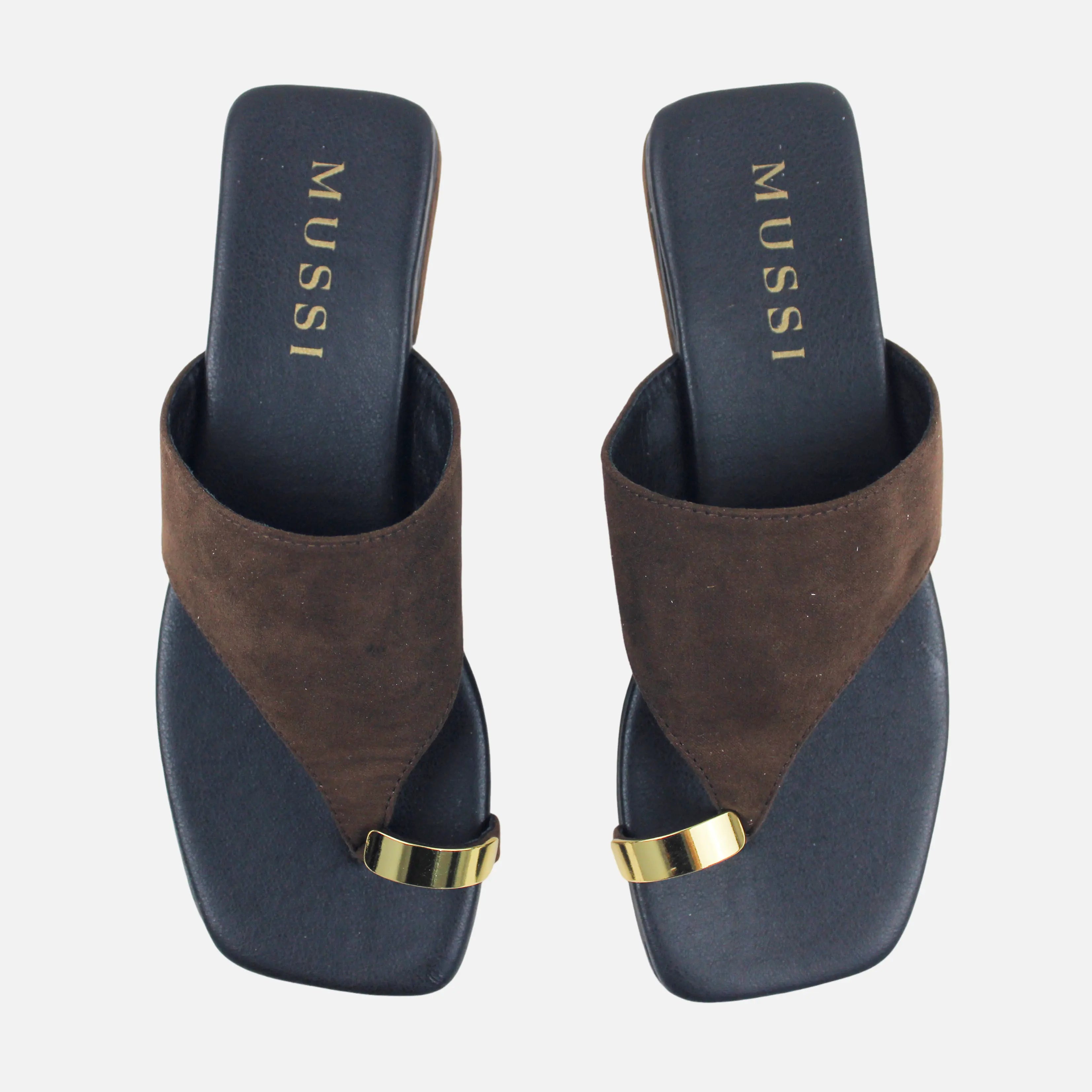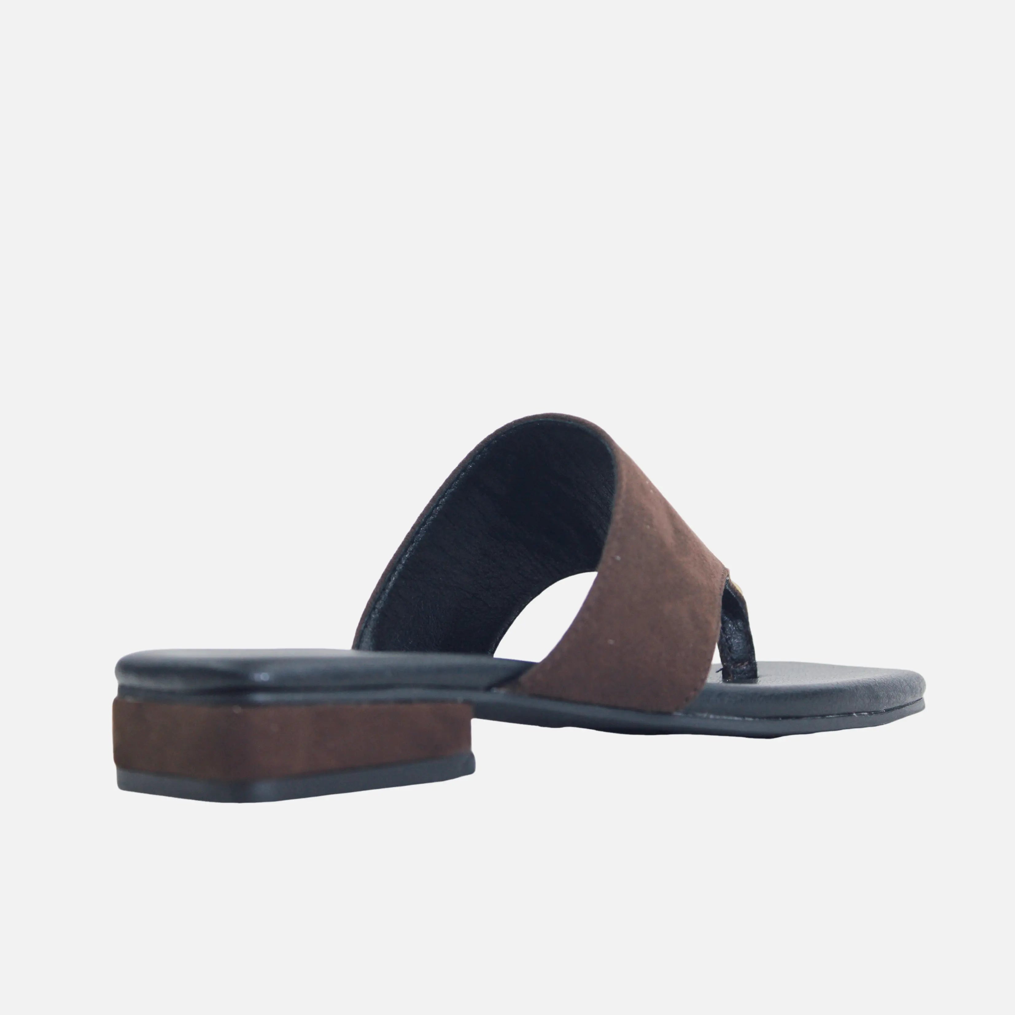 Sandalia plana con capellada en cuero, con suela en sintético de 3 cm de altura y forro interno en sintético. Ligereza y elegancia en un solo paso. Su diseño con tira ancha y detalle metálico dorado realza el pie con un toque chic, ideal para elevar tus looks casuales. Perfectas para acompañar jeans, vestidos o faldas midi con un aire relajado pero sofisticado.