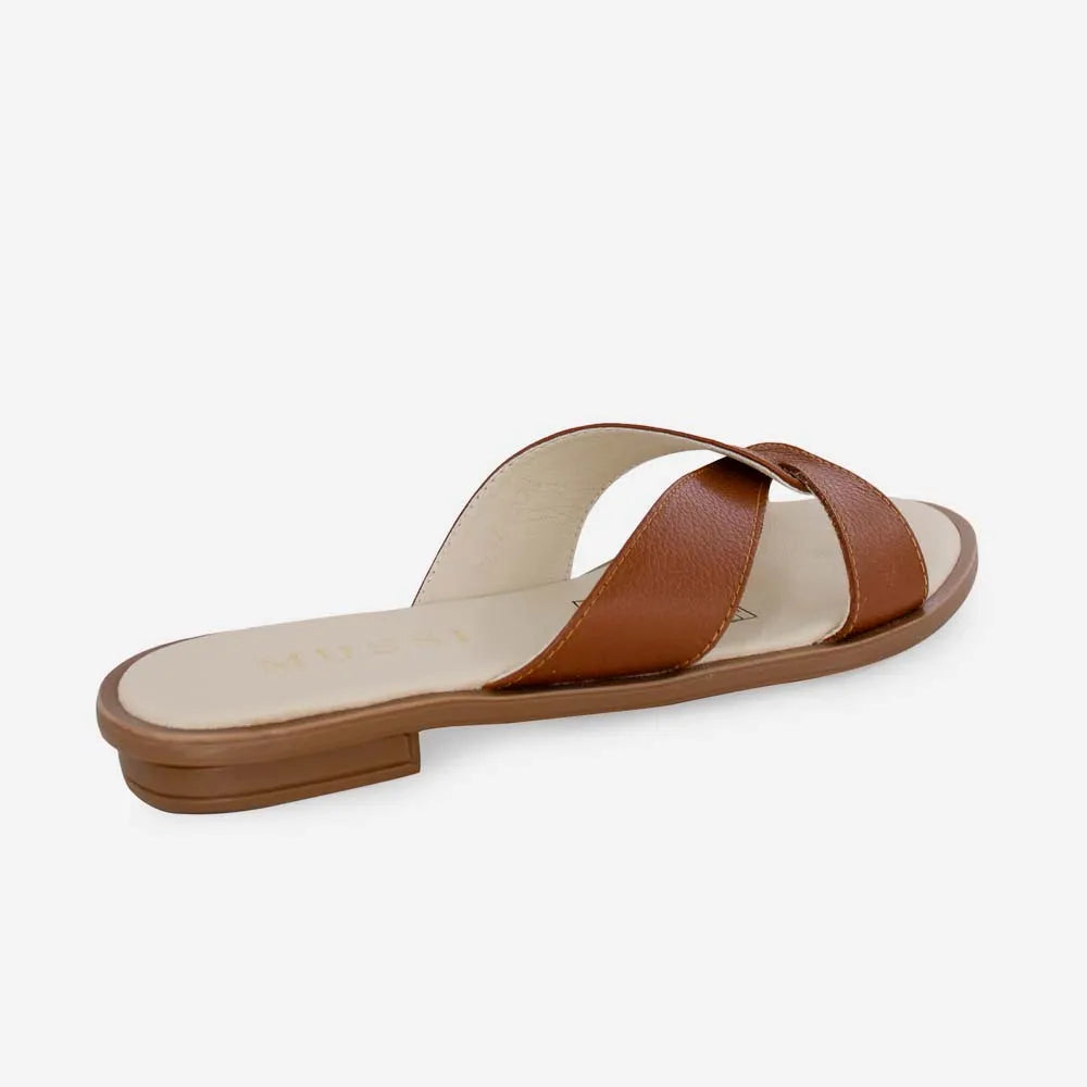 Sandalia plana con capellada en cuero, con suela en sintético de 2 cm de altura y forro interno en sintético. Las sandalias planas son un calzado cómodo y versátil que se puede usar en diversas ocasiones.