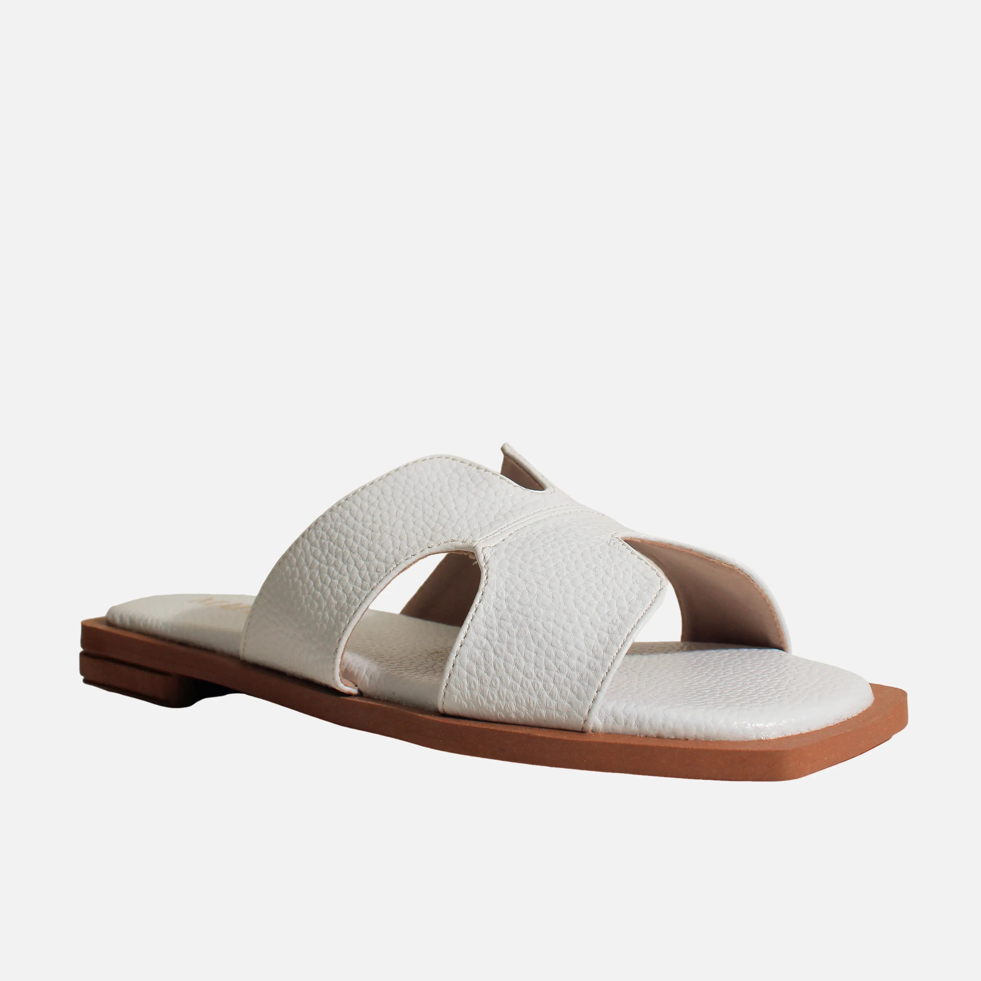 Sandalia plana con capellada en sintético, con suela en sintético de 2 cm de altura y forro interno en textil. Minimalismo y lujo para tus días de sol. Estas sandalias planas destacan por su diseño de tiras finas y materiales nobles que consienten tus pies. Un calzado versátil, artesanal y fresco, indispensable para un look mediterráneo sofisticado.
