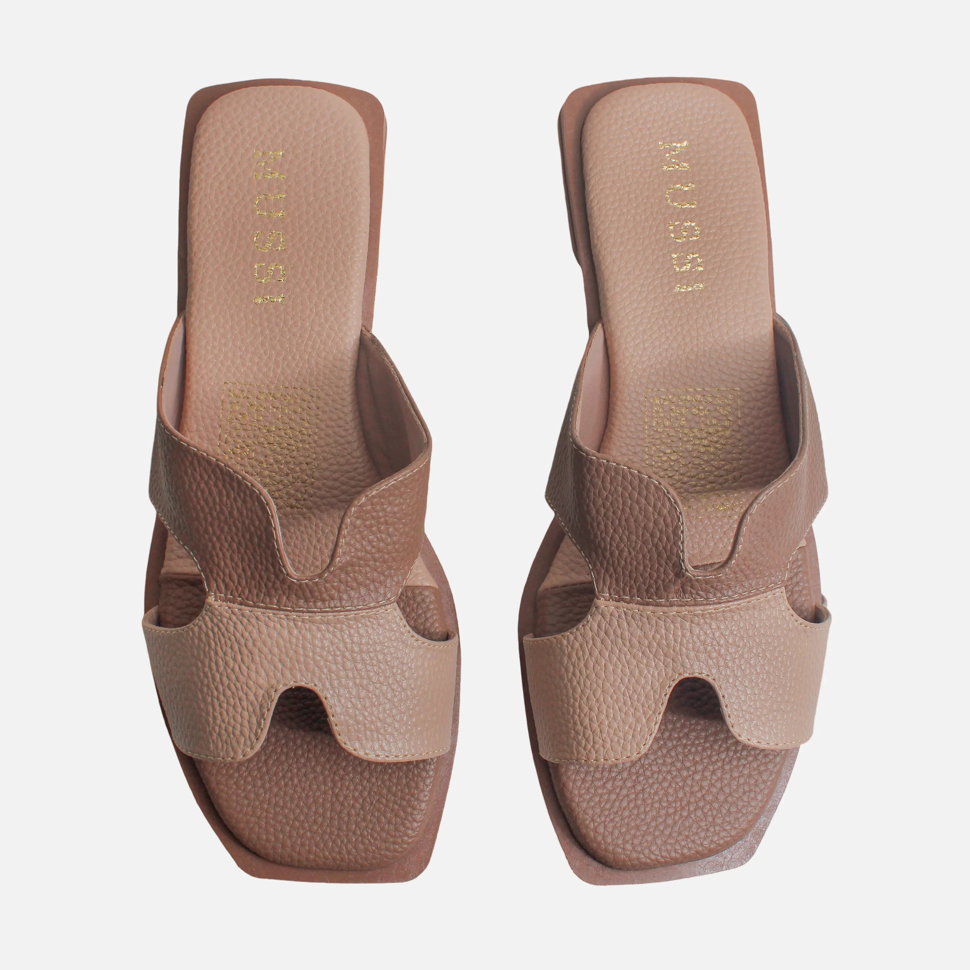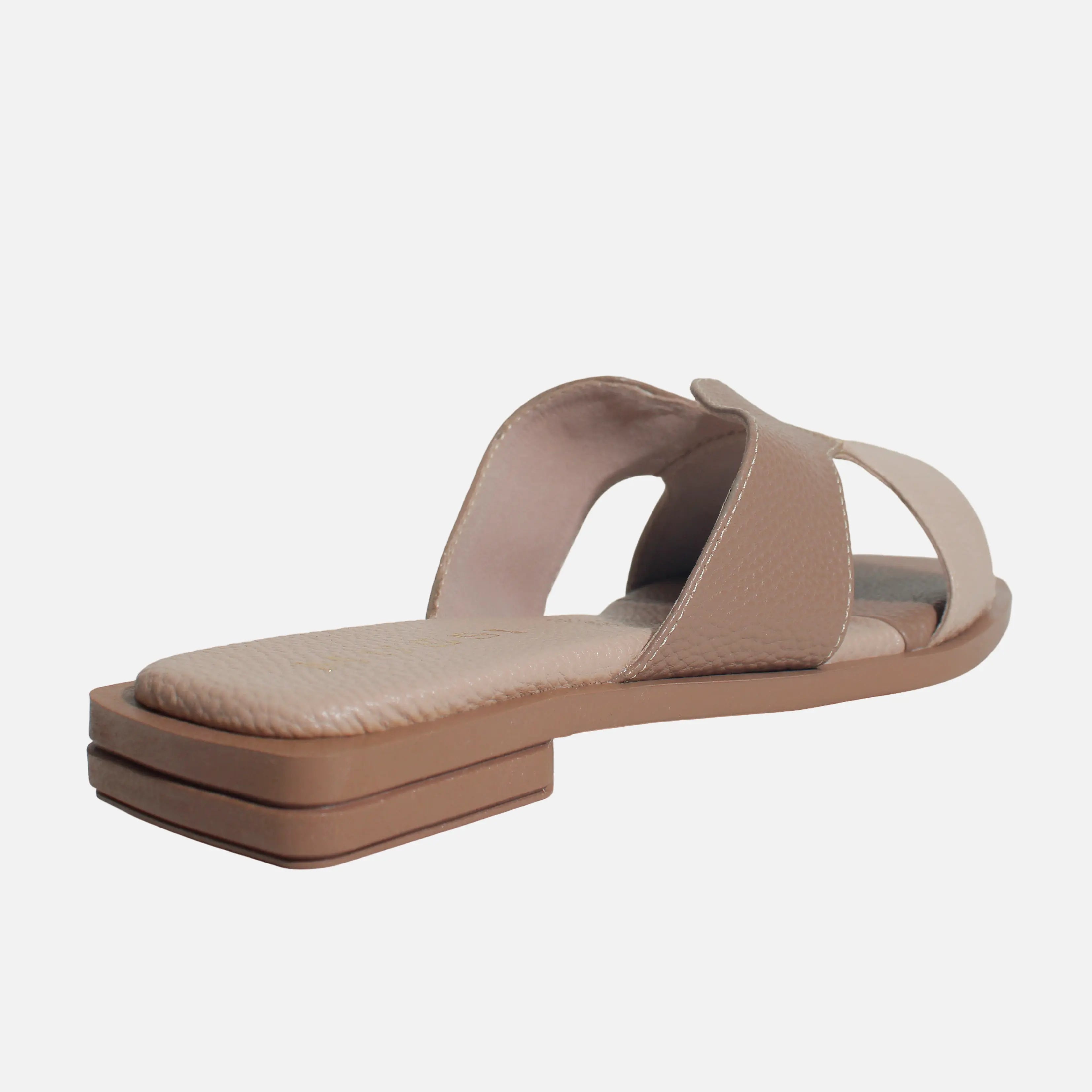 Sandalia plana con capellada en sintético, con suela en sintético de 2 cm de altura y forro interno en textil. Minimalismo y lujo para tus días de sol. Estas sandalias planas destacan por su diseño de tiras finas y materiales nobles que consienten tus pies. Un calzado versátil, artesanal y fresco, indispensable para un look mediterráneo sofisticado.