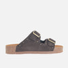 Sandalia plana con capellada en cuero, con suela en sintético de 3 cm de altura y forro interno en sintético. Sandalia plana femenina, cómoda y fácil de llevar. Úsala con shorts, faldas o pantalones ligeros para crear looks relajados y frescos.