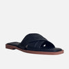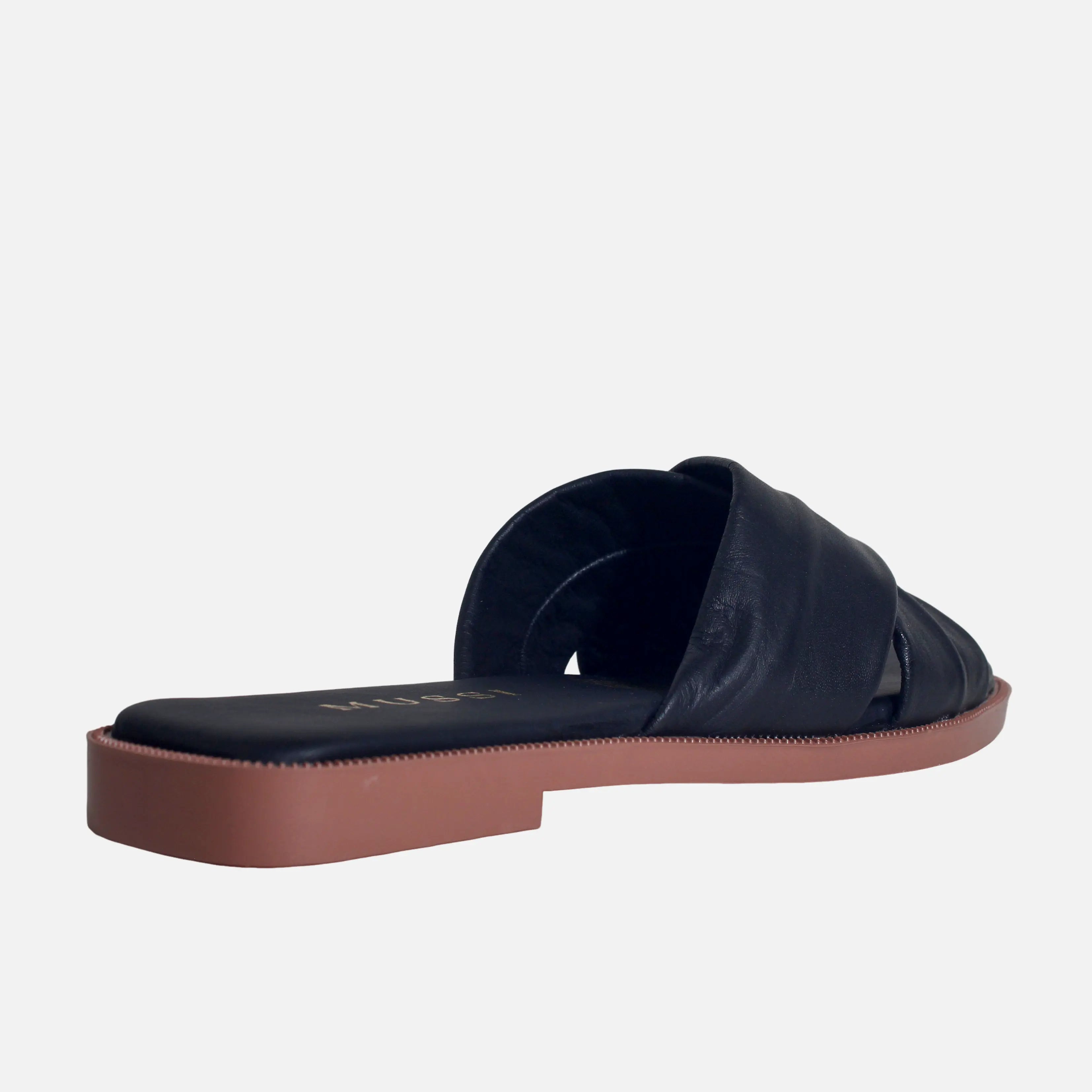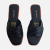 Sandalia plana smeralda de cuero para mujer - Negro