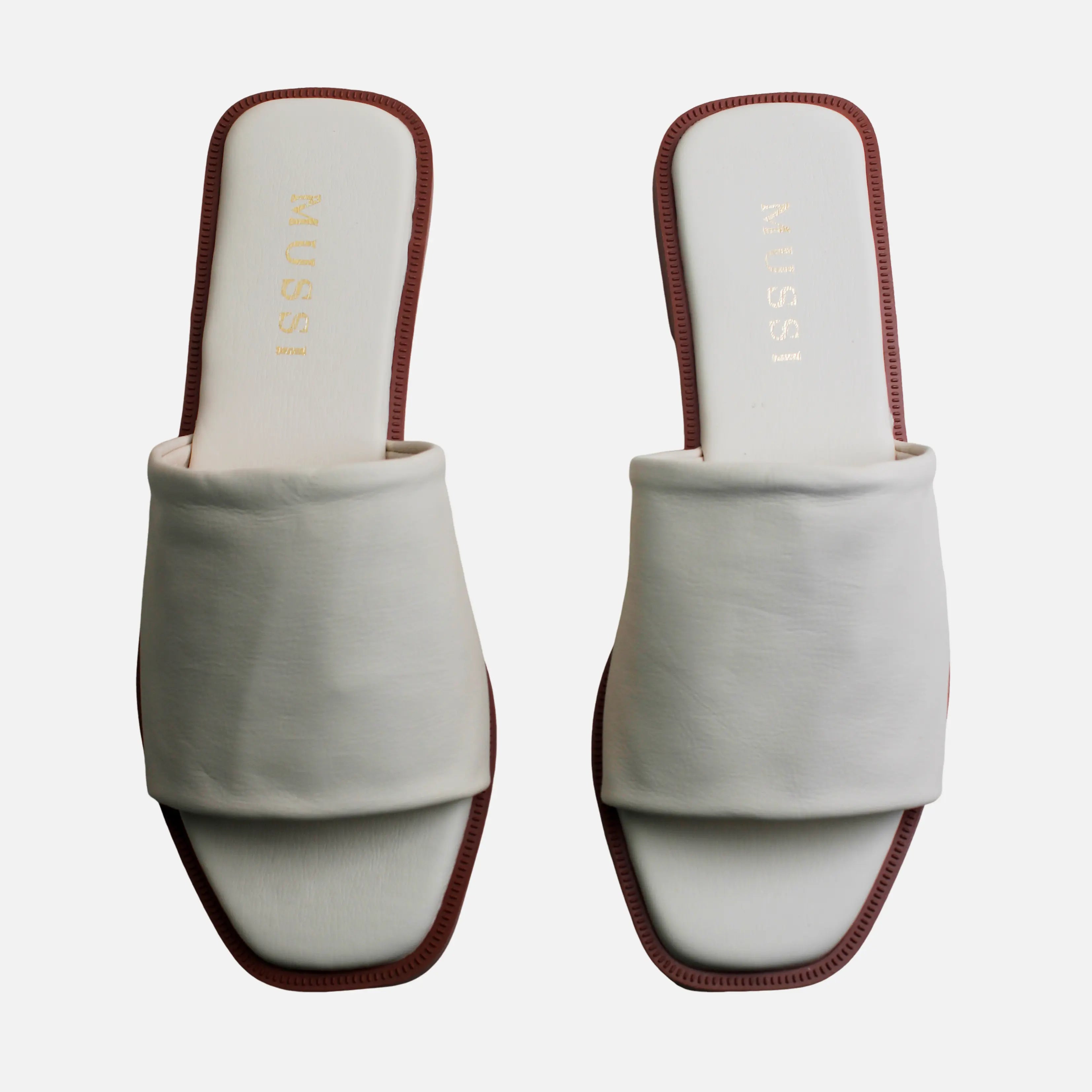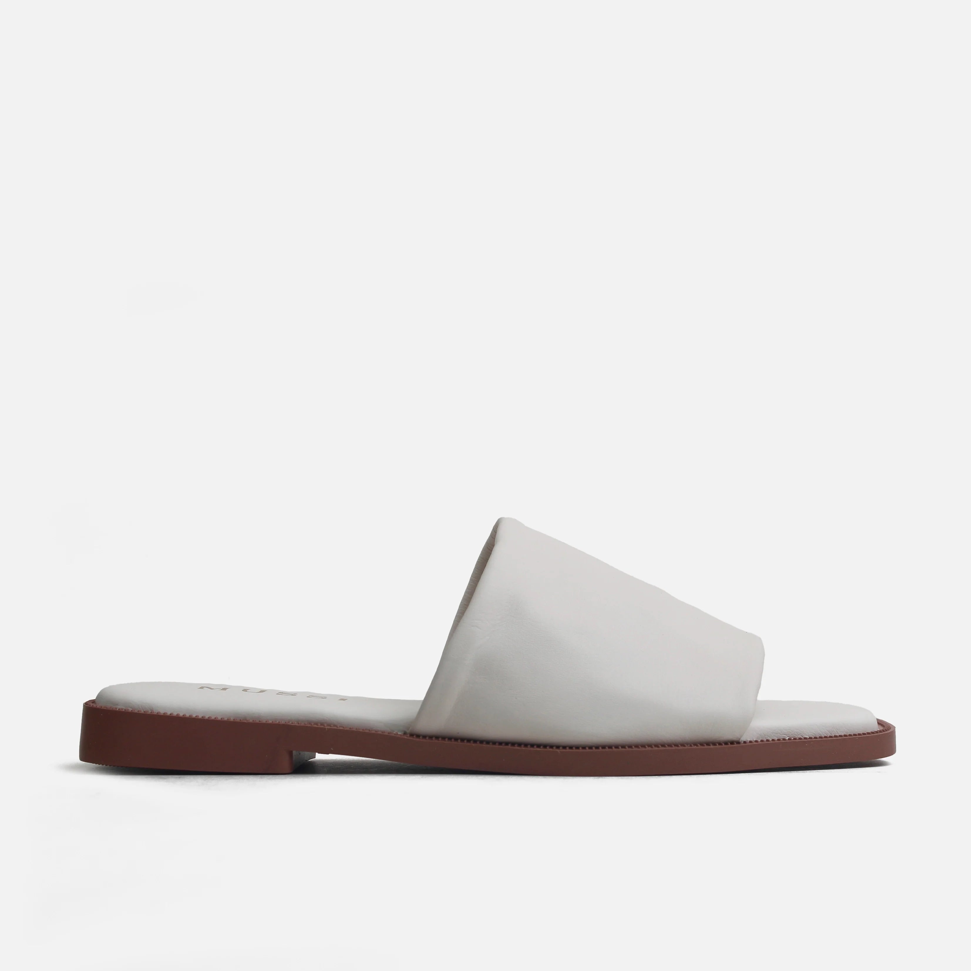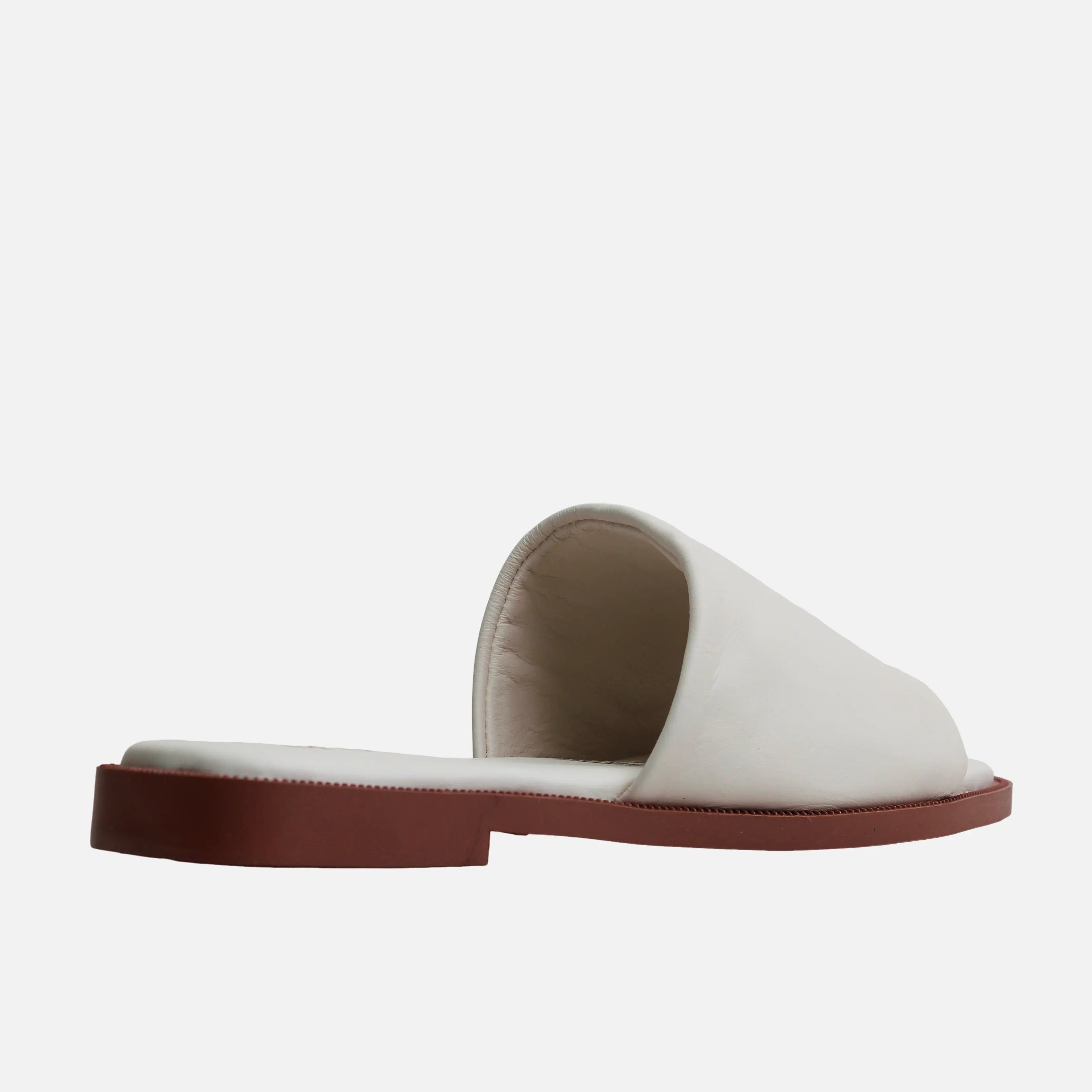 Sandalia plana vivian de cuero para mujer - Hueso