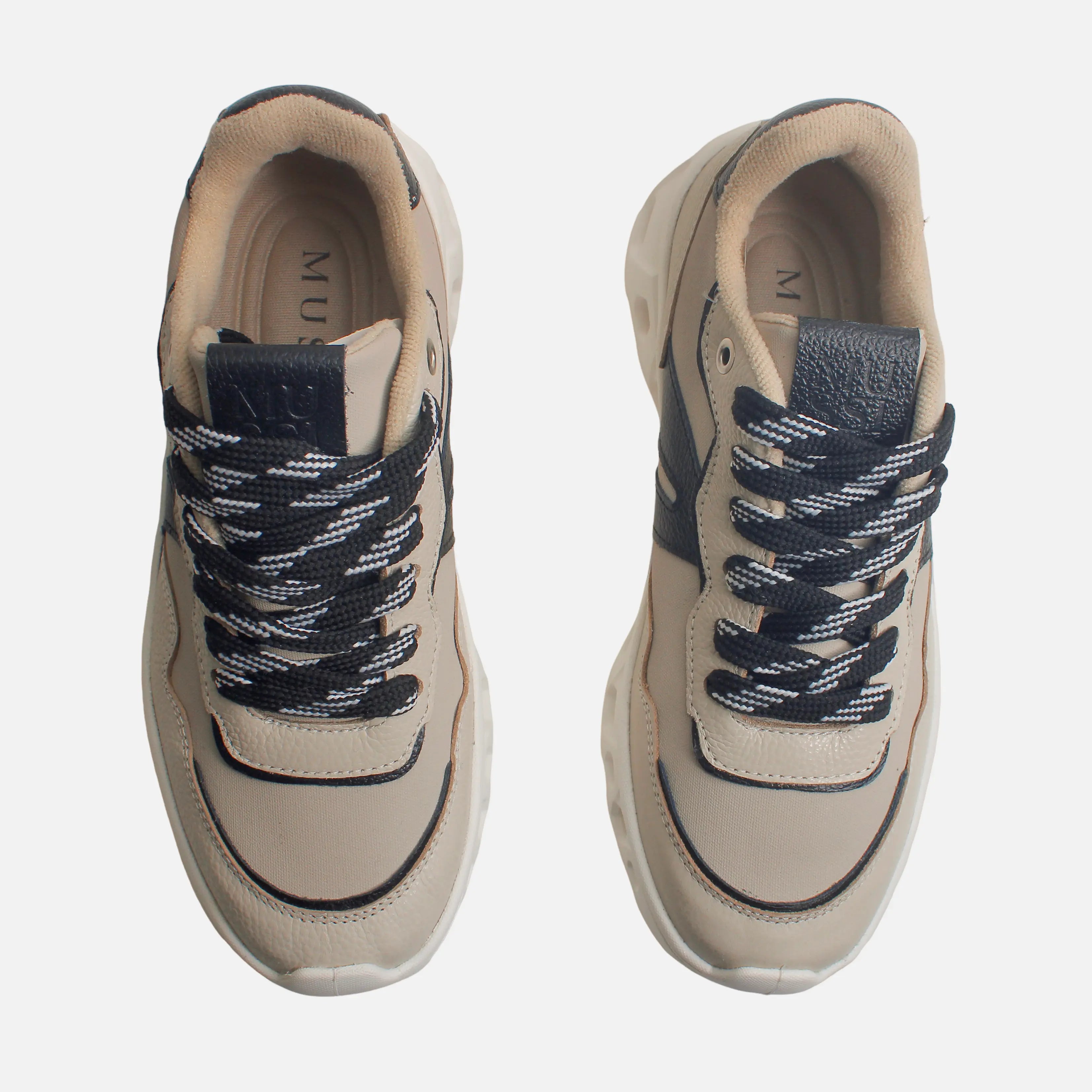 Tenis con plataforma con capellada en cuero, con suela en sintético de 4 cm de altura y forro interno en sintético. Lleva tu outfit a otro nivel con estos deportivos de plataforma. Diseñados para destacar, combinan la estética deportiva con la sofisticación de la moda actual. Ideales para quienes buscan ganar altura con total comodidad y un toque vanguardista.