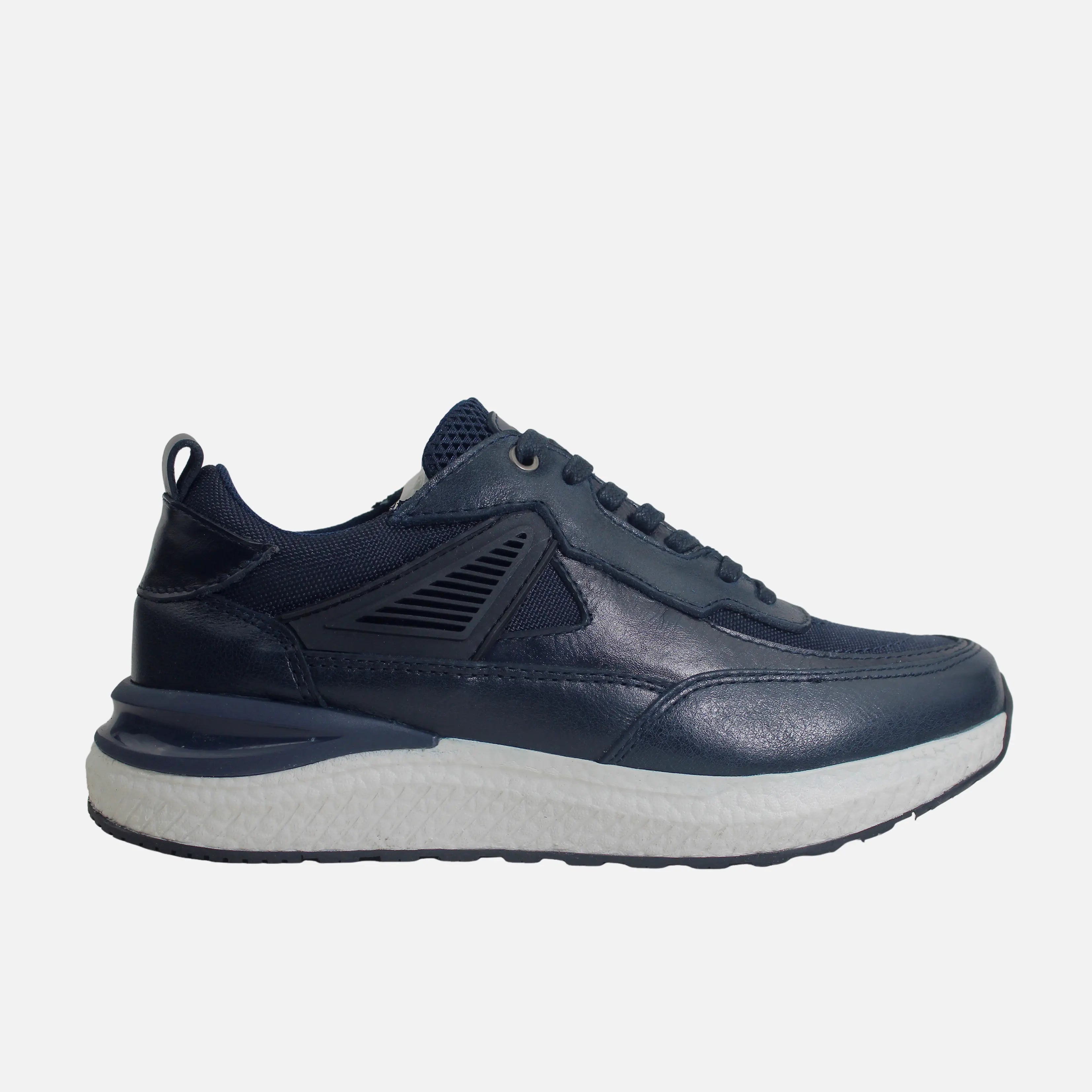 Tenis con capellada en cuero, con suela en sintético de 5 cm de altura y forro interno en textil. Un modelo que equilibra funcionalidad y estilo. Ideal para días en los que necesitas comodidad total sin renunciar a un look pulido.