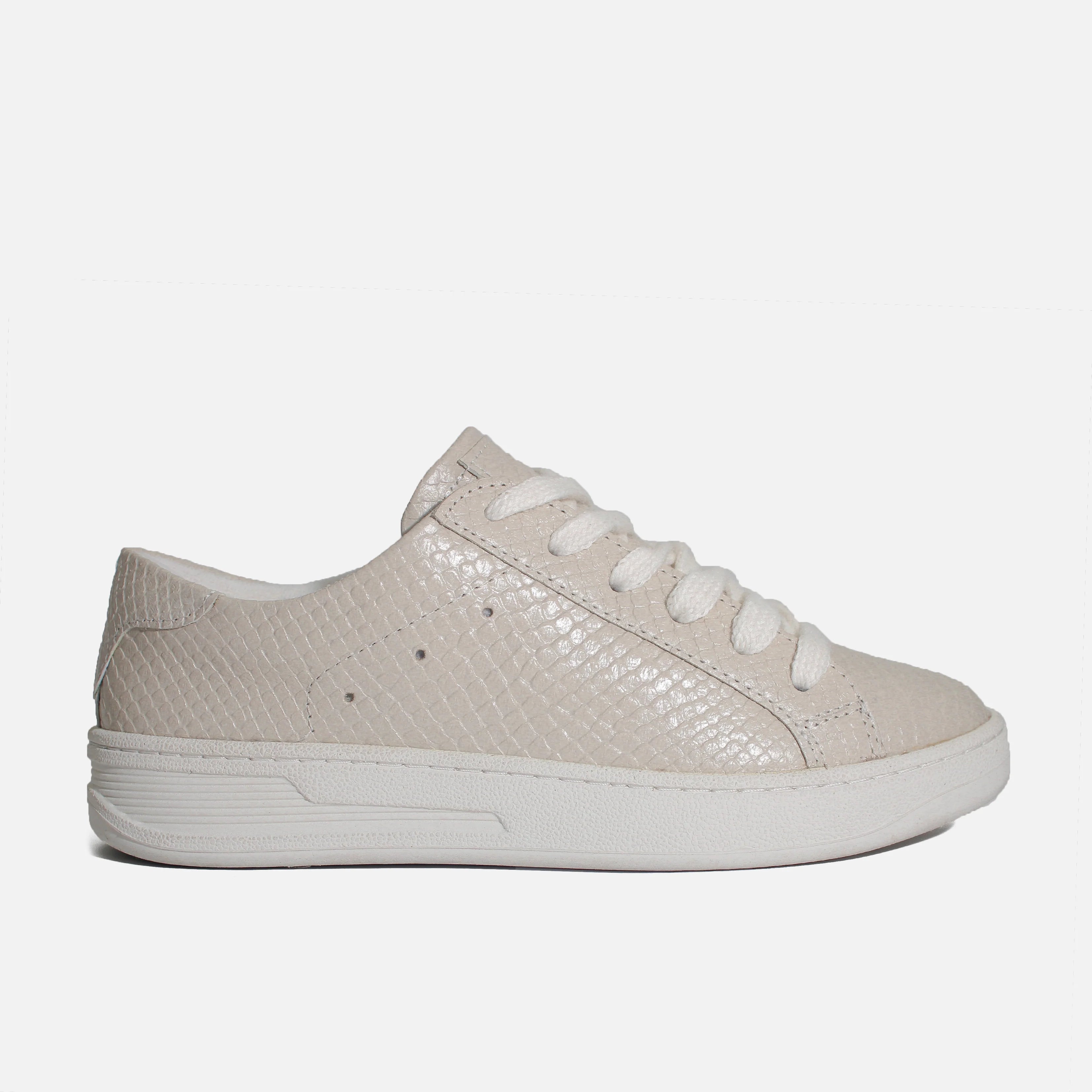 Tenis con capellada en cuero, con suela en sintético de 3 cm de altura y forro interno en sintético. Un básico elevado con textura protagonista. Su diseño limpio se combina con un acabado sutilmente grabado que le da carácter sin perder versatilidad. Ideal para looks relajados con jeans, vestidos midi o pantalones amplios, logrando un balance perfecto entre comodidad y estilo.